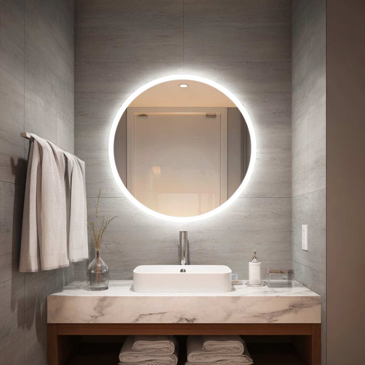 A backlit LED vanity mirror combines function and form in the most subtle way. The gentle glow from behind the mirror creates an ambient atmosphere while removing the need for bulky light fixtures.
