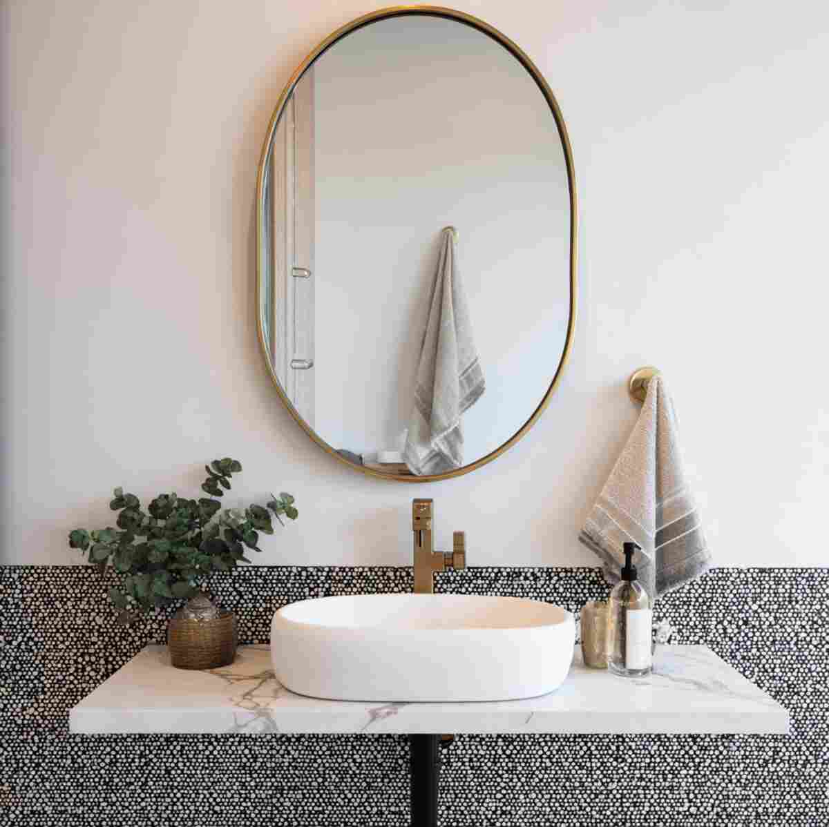 An oval wall-mounted mirror softens the sharp angles often found in minimalist interiors. Its smooth, curved design brings balance and flow to your vanity area without adding unnecessary details.
