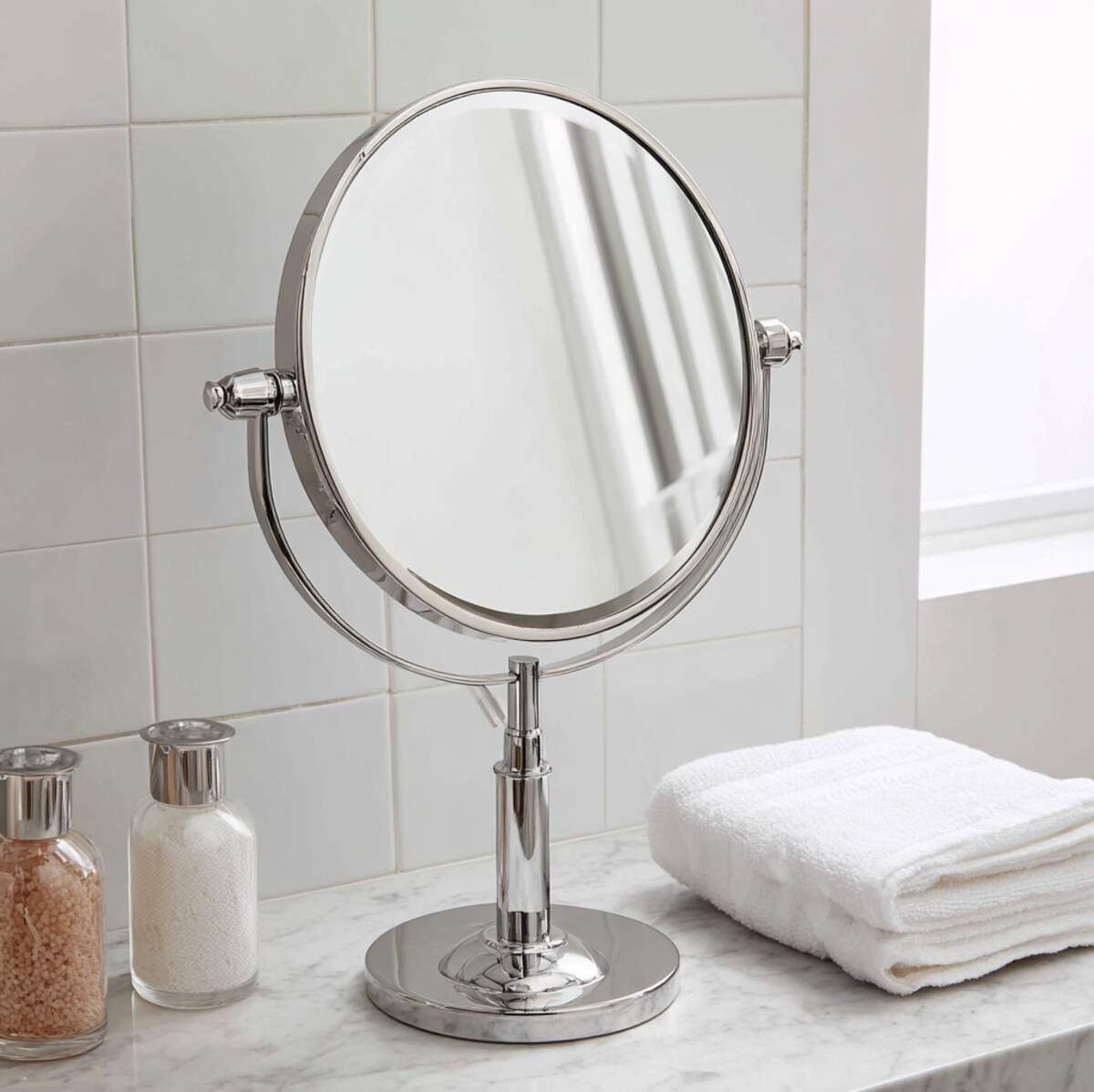 The adjustable frame allows you to tilt the mirror for the perfect angle, while the chrome finish reflects light and complements a minimalist palette.