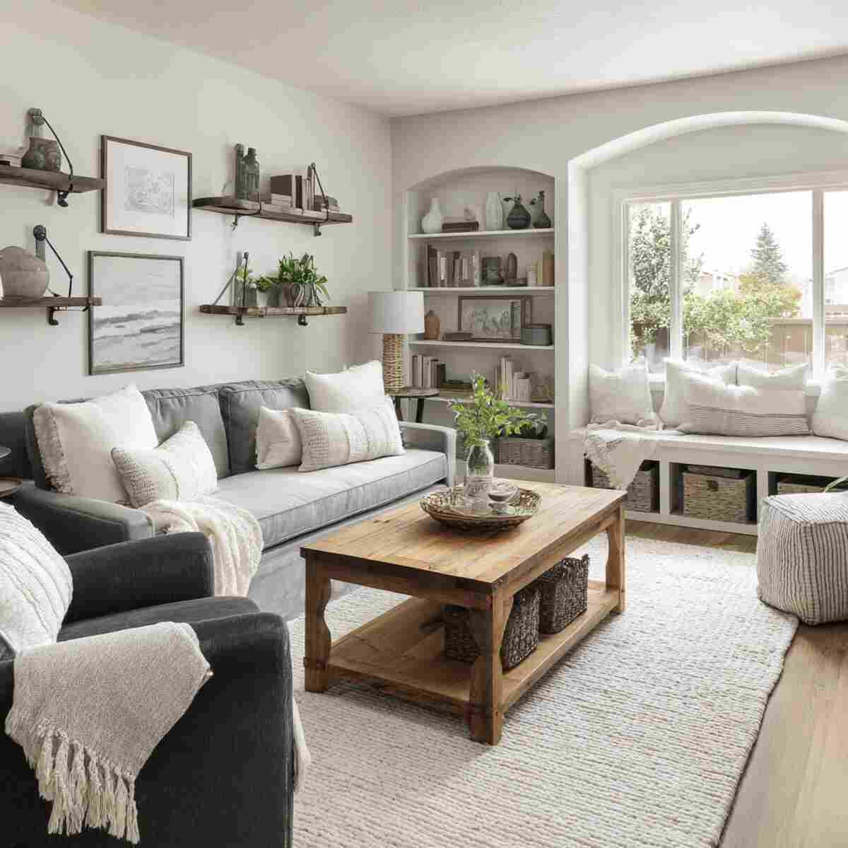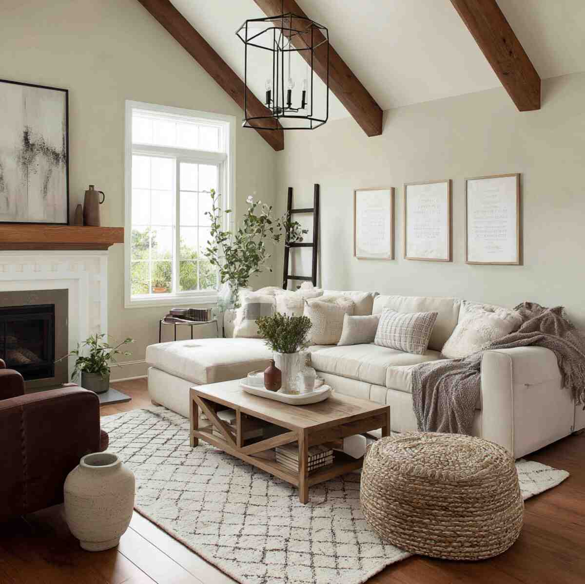 This pairing fits beautifully within Modern Farmhouse Living Room Color Ideas because it combines warmth and brightness effortlessly. It creates a timeless and welcoming look that feels lived-in and full of character.
