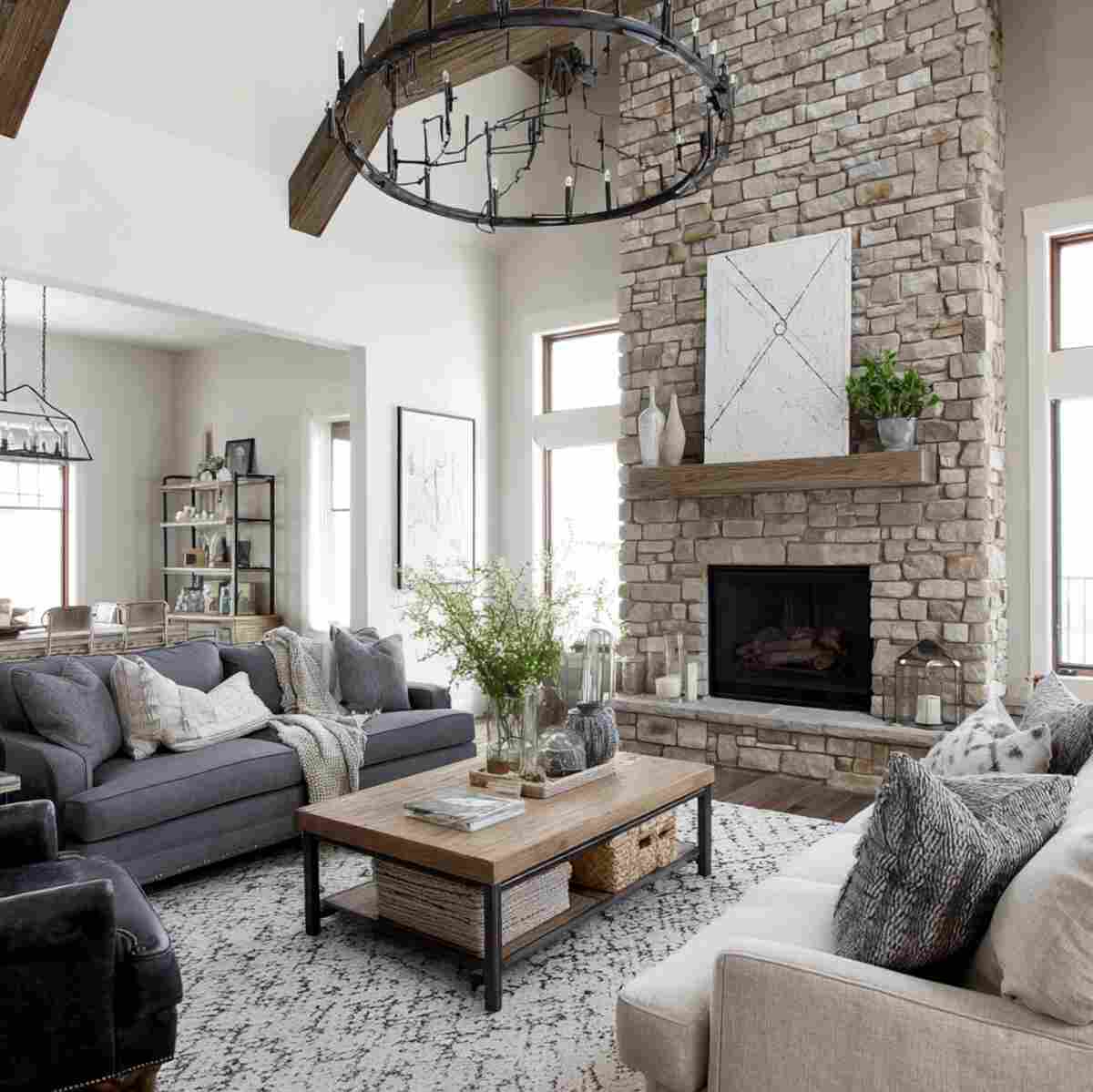 Stone gray and weathered wood make an ideal choice for a refined yet rustic look. These tones blend beautifully in Modern Farmhouse Living Room Color Ideas by highlighting texture and depth.