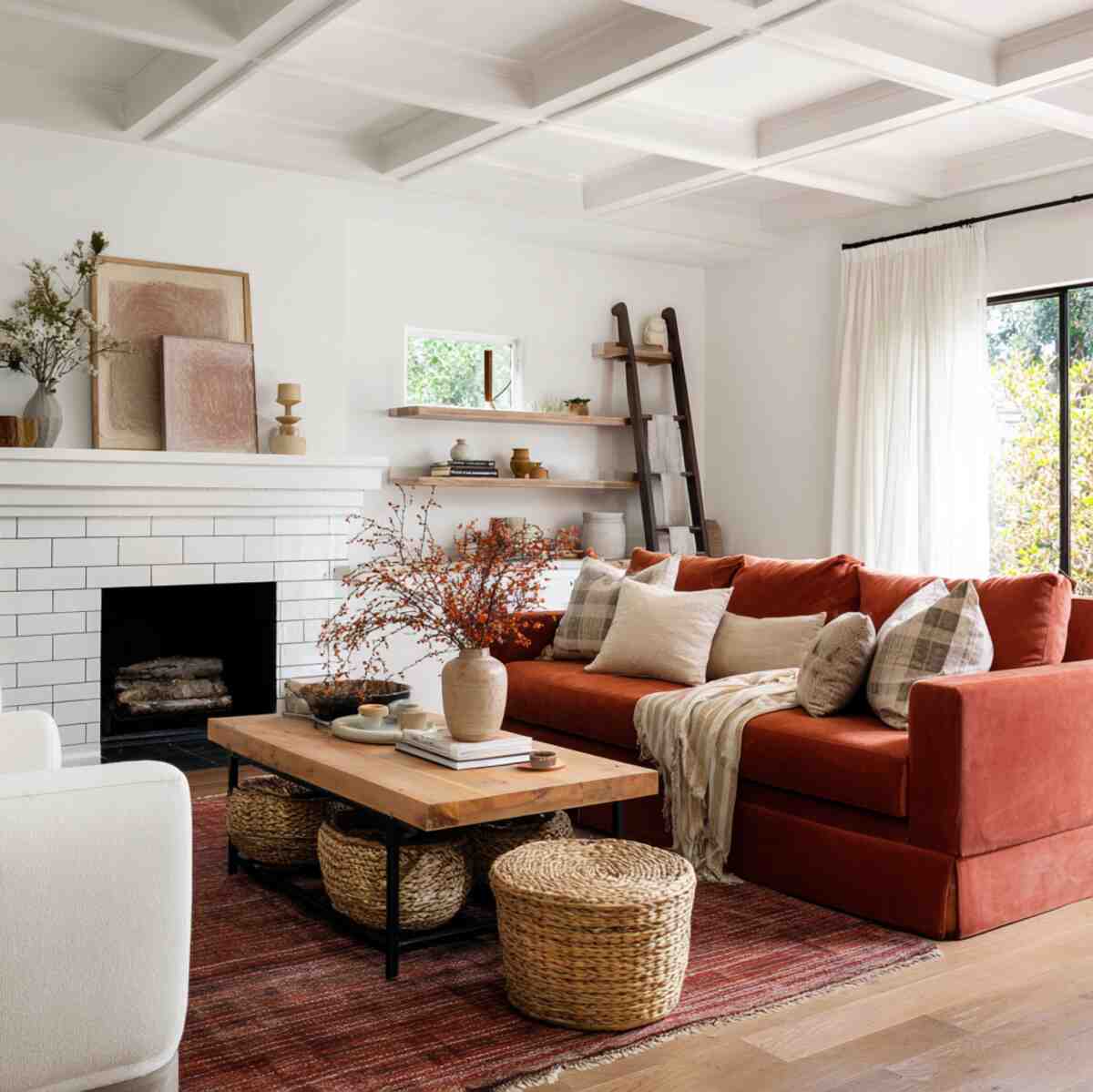 Off-white and terracotta make a cozy and earthy combination that’s both warm and modern. As one of the most charming Modern Farmhouse Living Room Color Ideas, it brings life to neutral spaces.