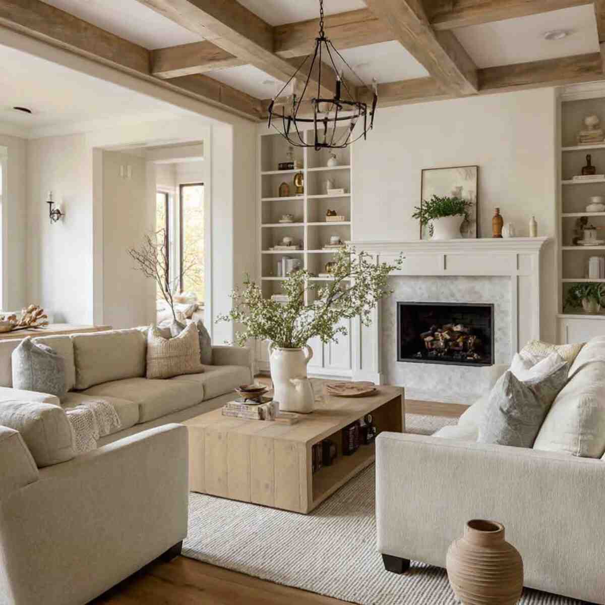 Soft beige and cream make your living room feel calm, inviting, and full of natural warmth.