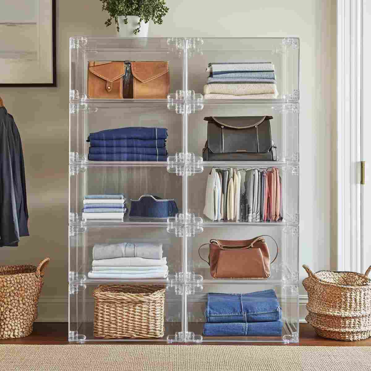 Clear acrylic cube organizers let you see what’s inside without opening them, which is great for busy or tight spaces.