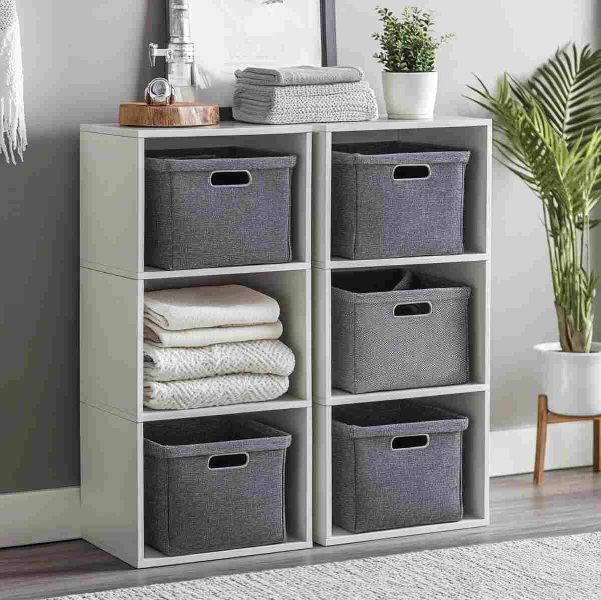Cube storage with fabric bins gives you both structure and softness, making your storage look neat even when items inside are messy.
