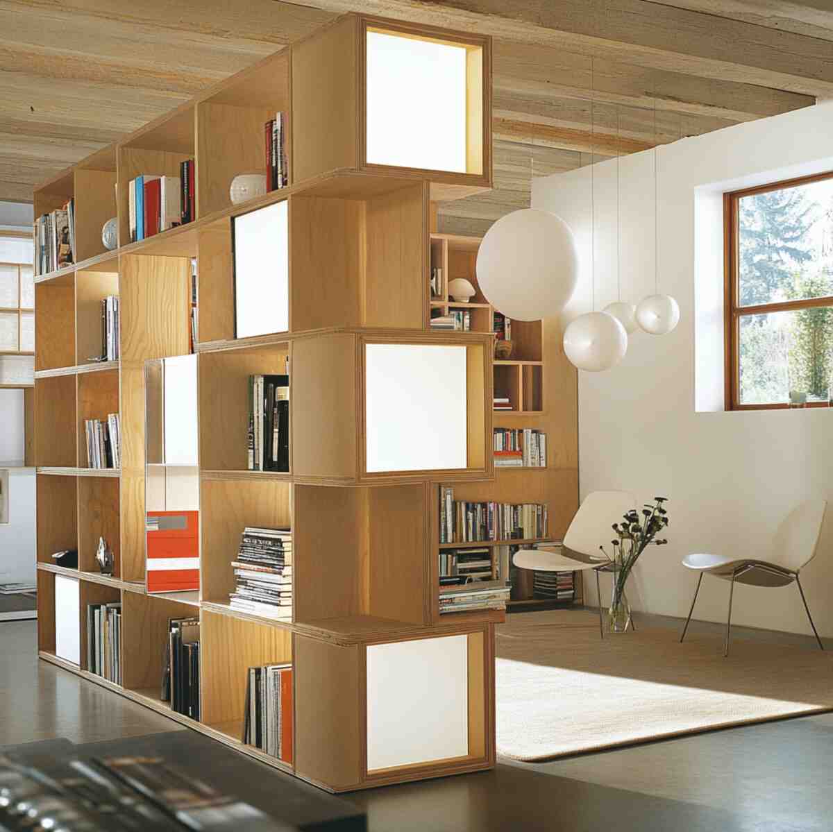 Cube units used as room dividers help small apartments zone out areas without closing off space.