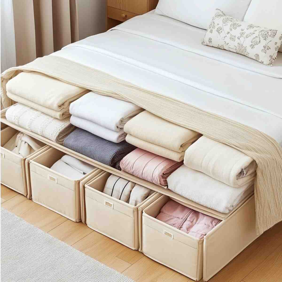 Under-bed cube organizers turn unused space into useful storage, perfect for keeping clutter out of sight.