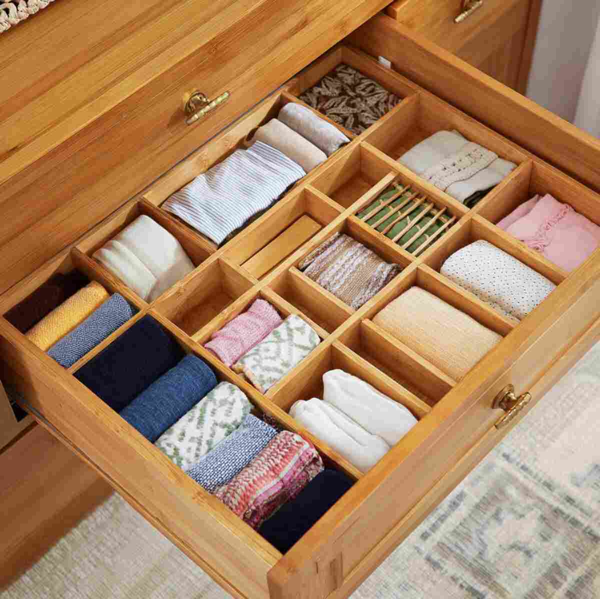 These Multi-Compartment Drawer Divider Ideas are eco-friendly, durable, and add a warm natural look to your storage setup.
