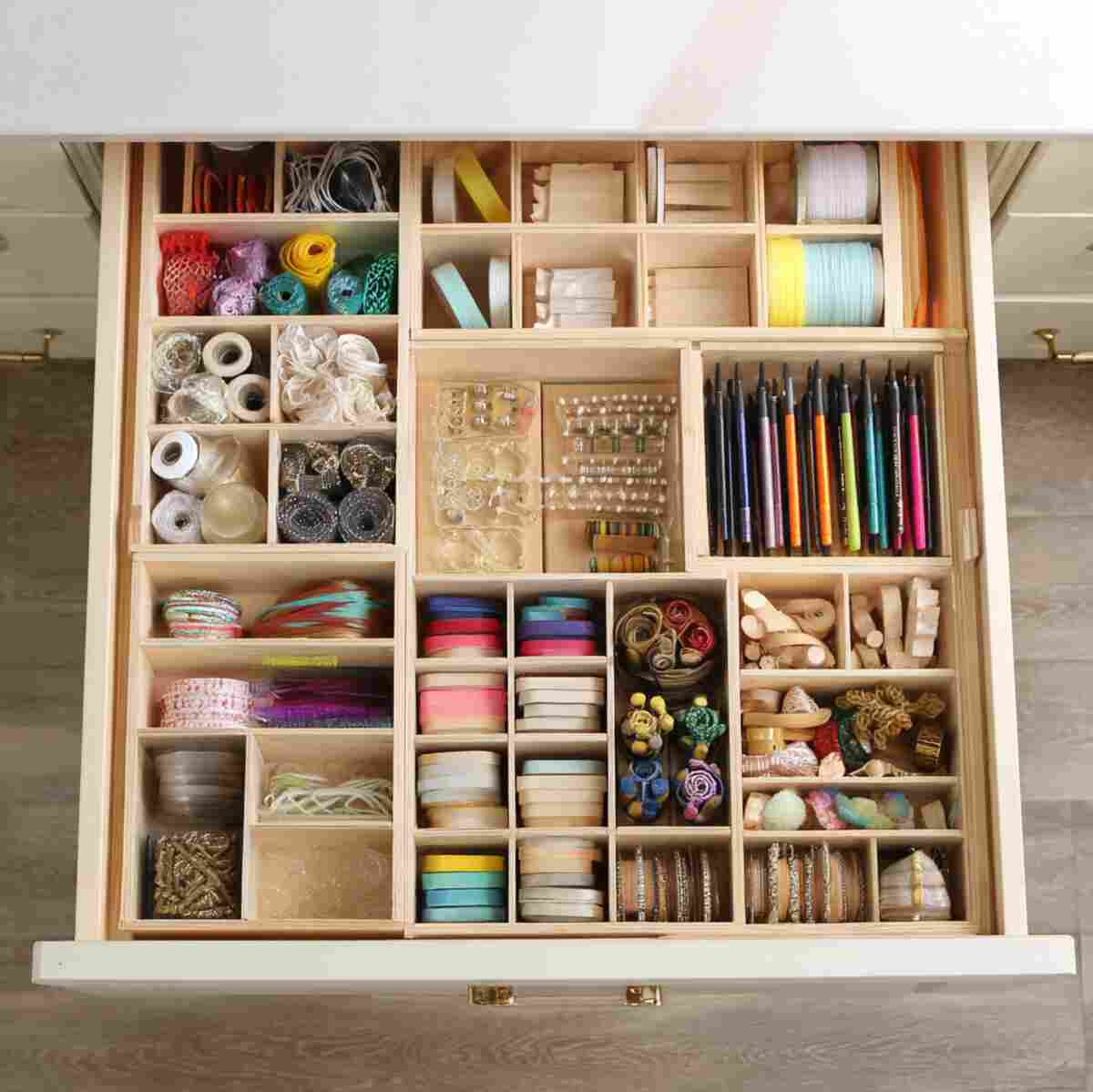 21. Wooden Craft Supply Drawer Organizer