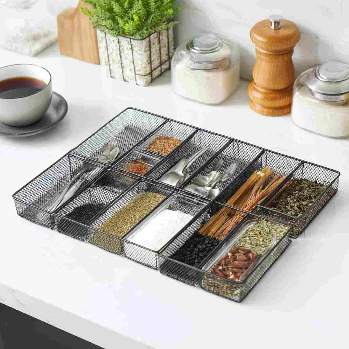 They come with divided sections that make organizing kitchen tools easy. These Multi-Compartment Drawer Divider Ideas bring natural texture and functionality to your kitchen storage.