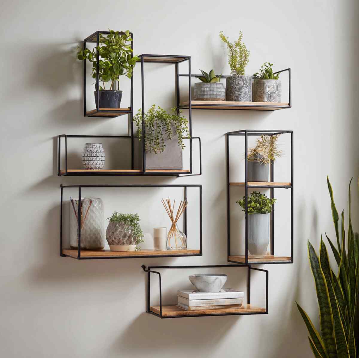 These multi-tier wall shelf ideas are perfect for anyone who loves a mix of raw materials and functional storage.