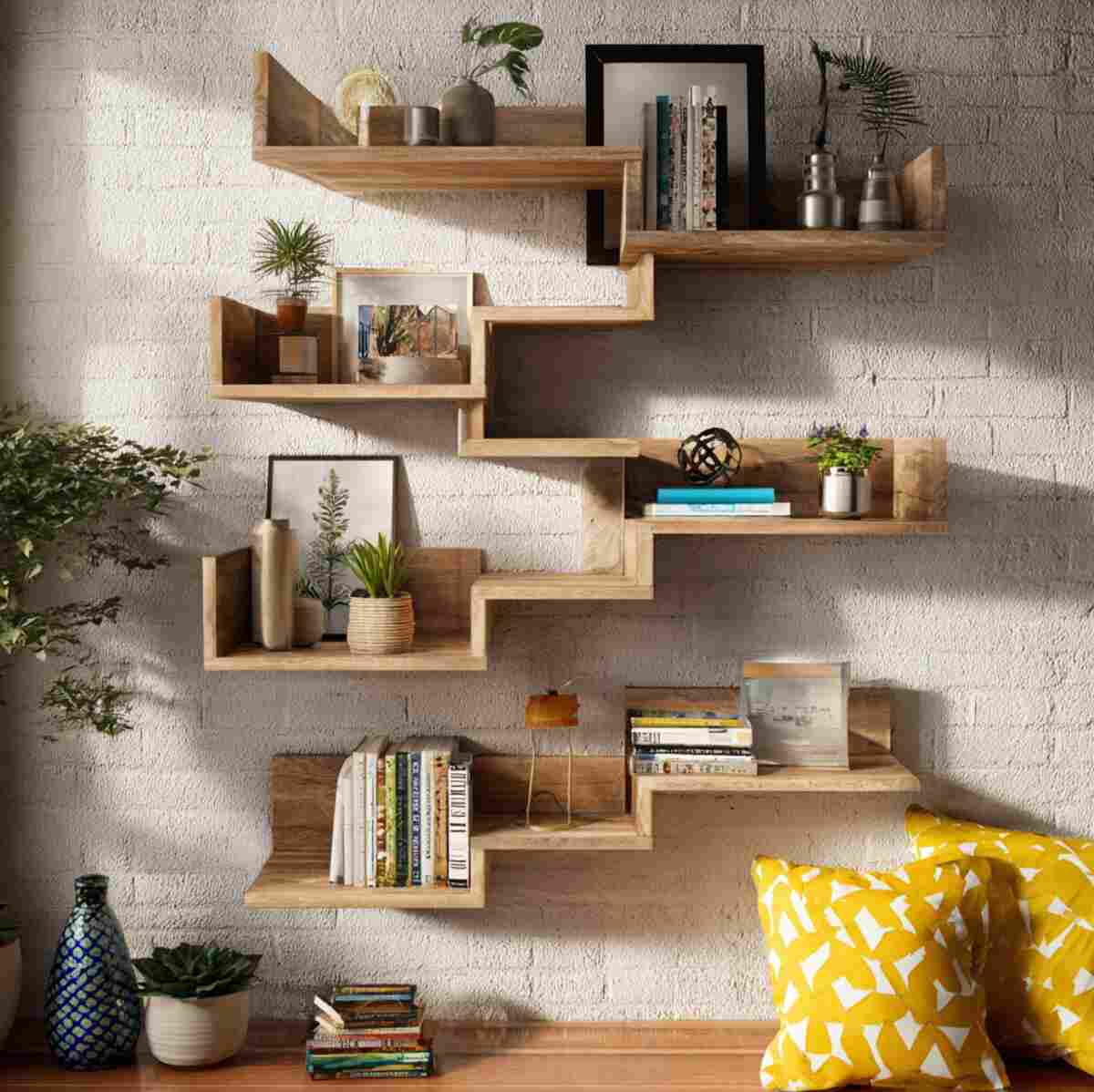When looking for unique multi-tier wall shelf ideas, zigzag designs give both creativity and storage.