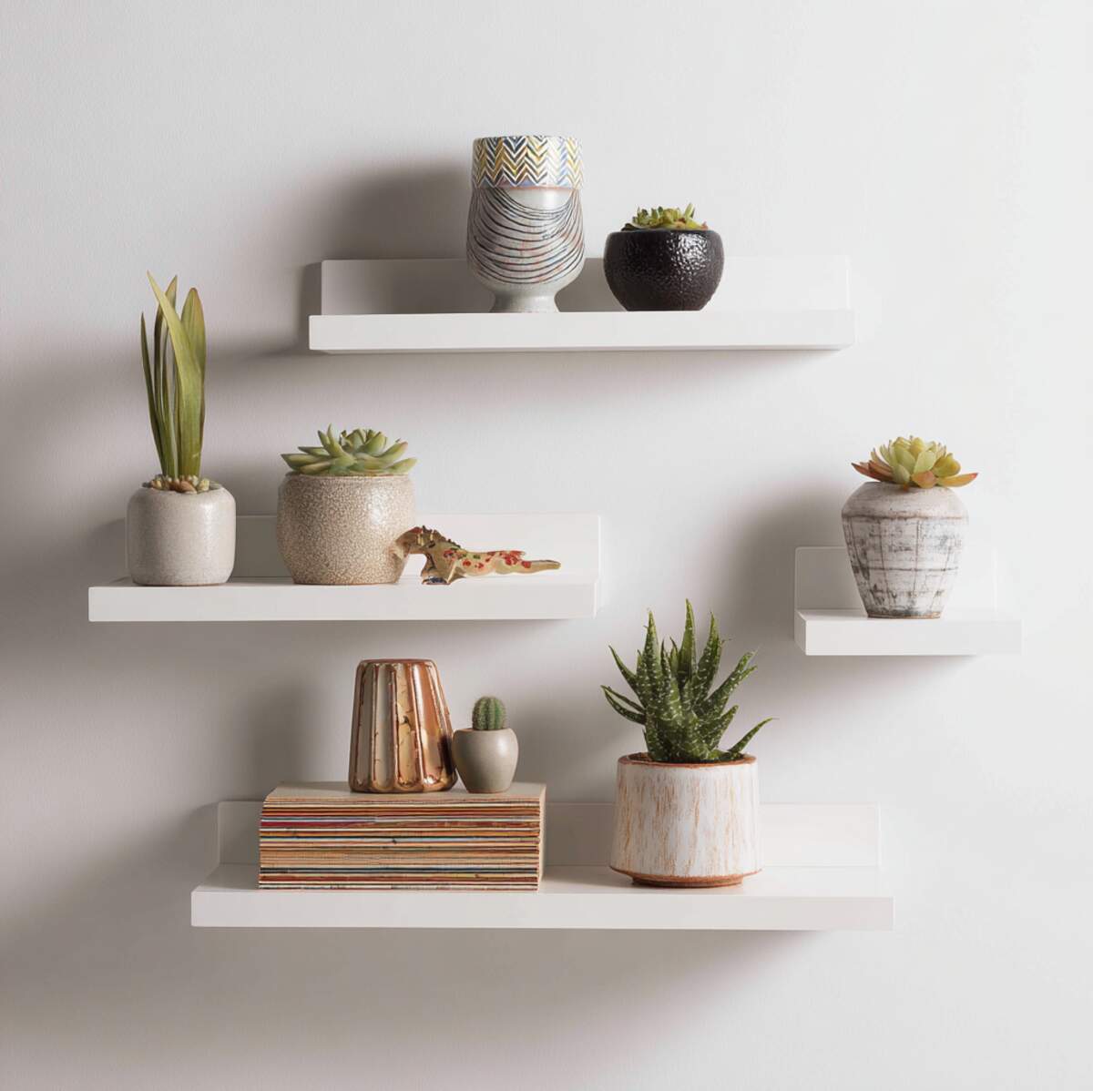 As a set of multi-tier wall shelf ideas, they bring a stylish twist to traditional shelving.