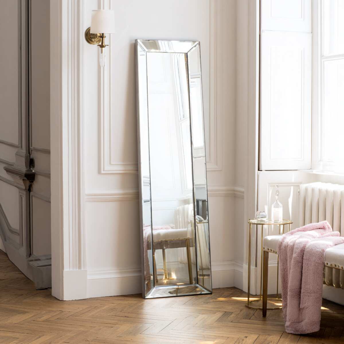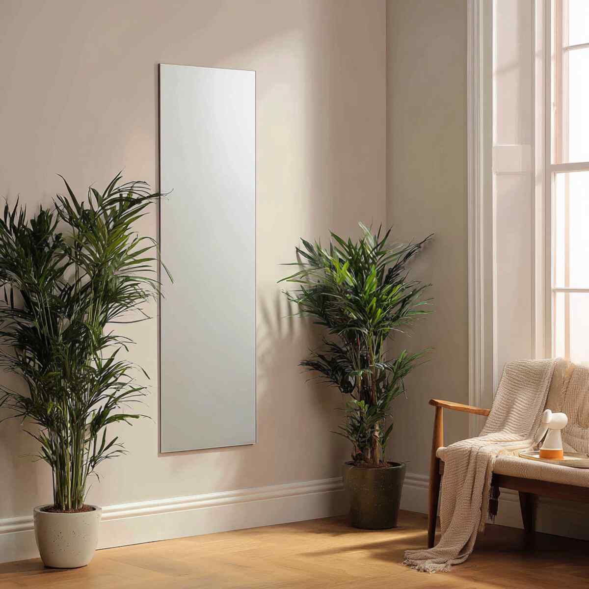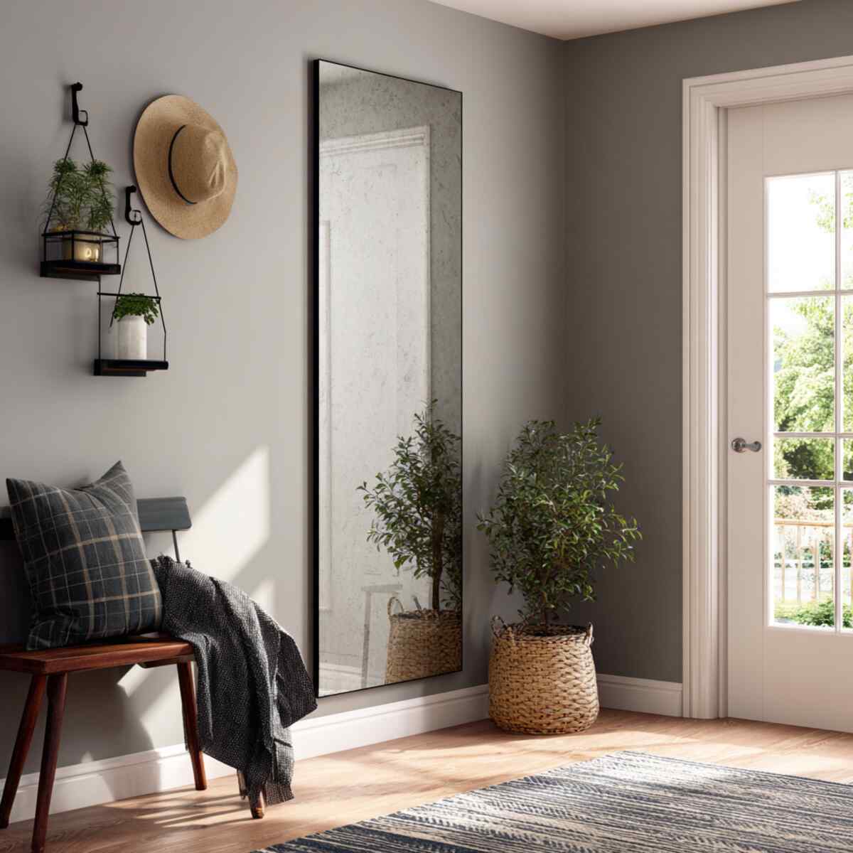 A tall frameless mirror creates a clean, modern look that instantly makes a narrow hallway feel more open. This option works well because it reflects maximum light without adding visual weight.