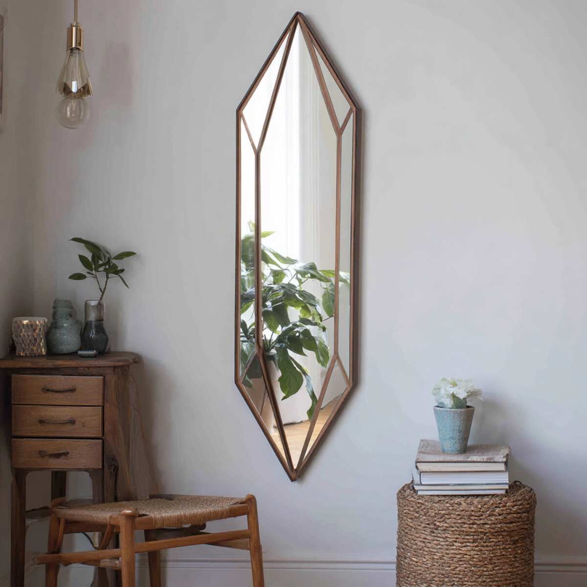 Geometric mirrors bring an artistic flair while maintaining a narrow profile. Their unique shapes help make a small hallway feel more lively and modern.
