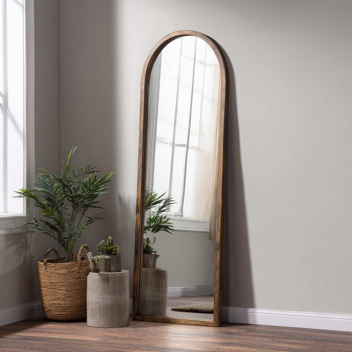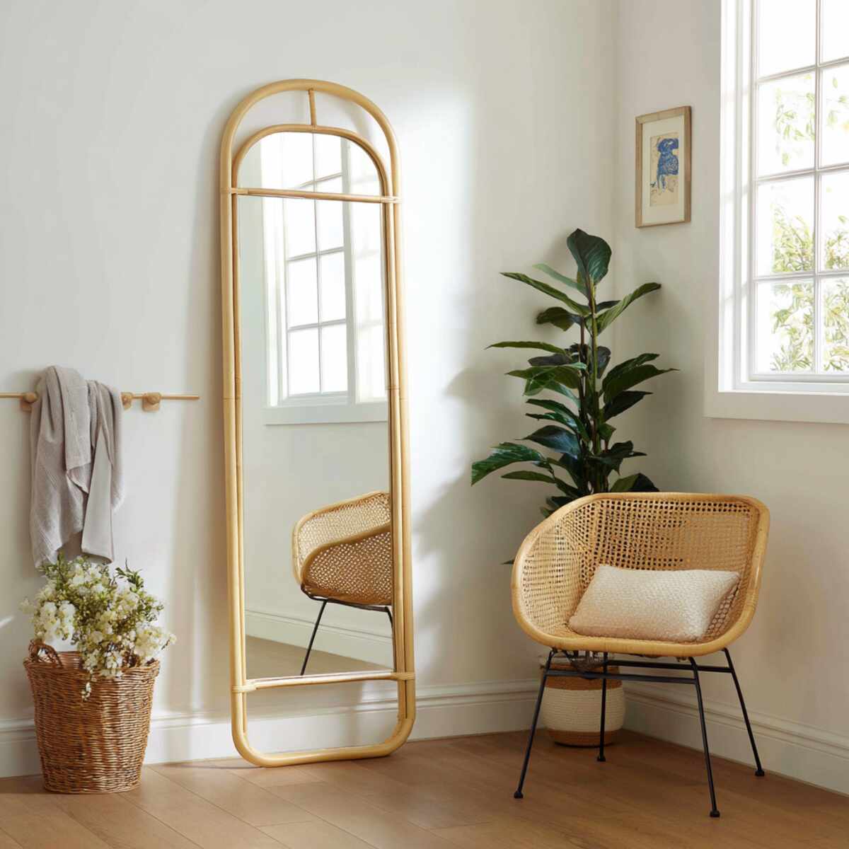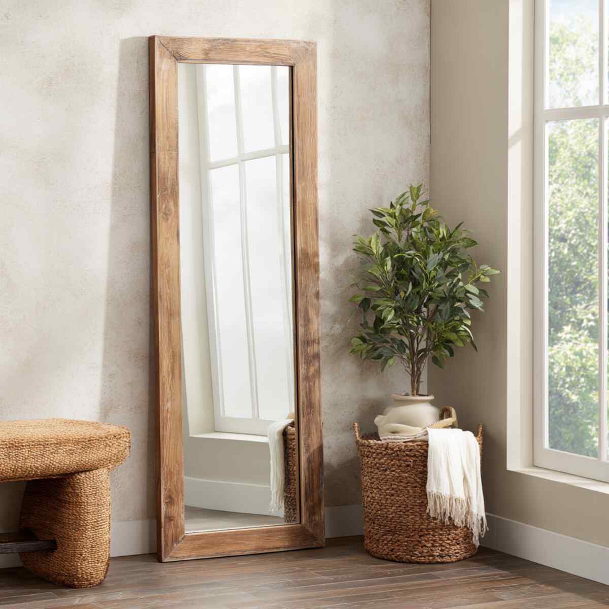 The slim design keeps it from overpowering the space. It’s one of the coziest Narrow Hallway Mirror Ideas that blends well with boho or coastal themes.