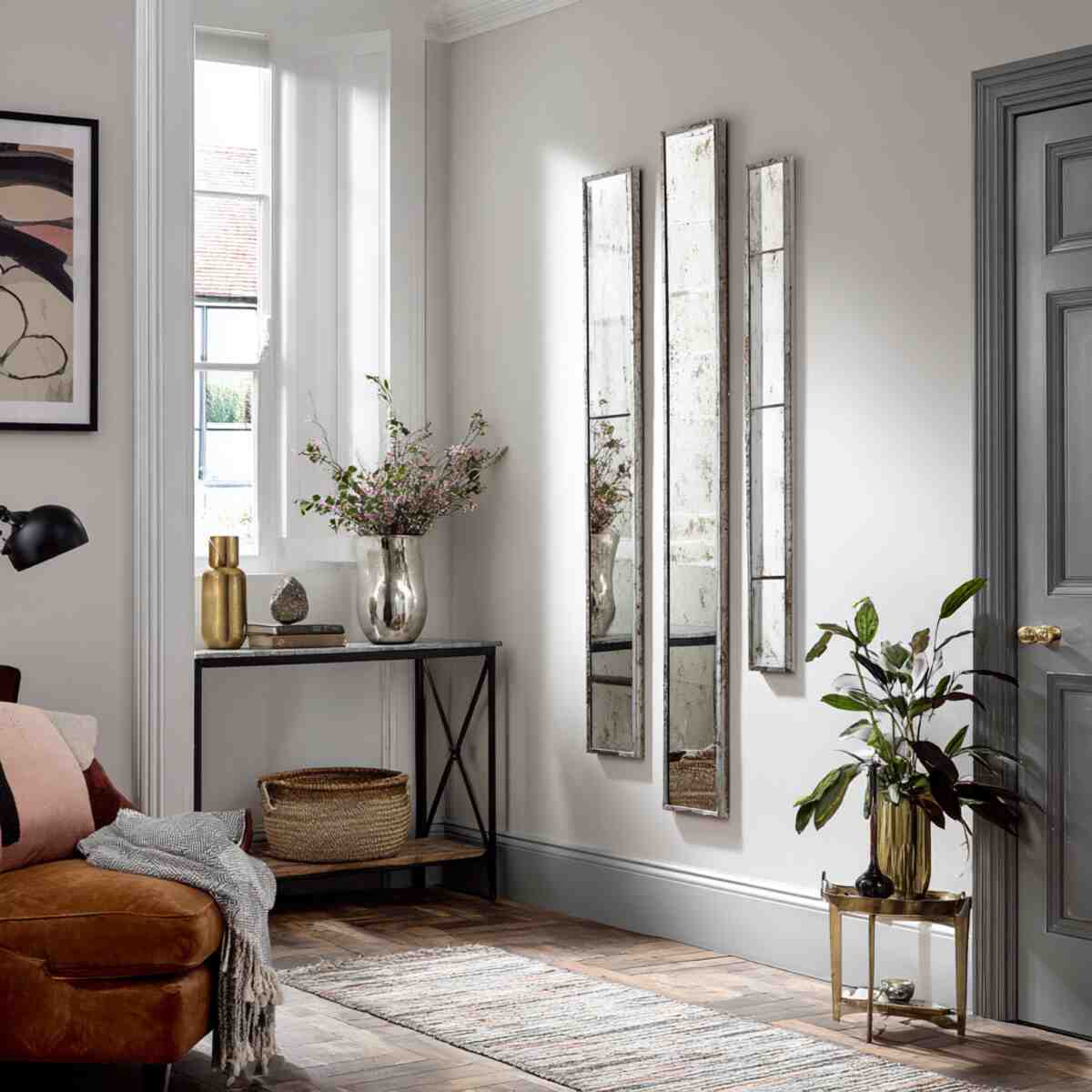 Using two or three thin panel mirrors creates a stylish, modern wall arrangement.
