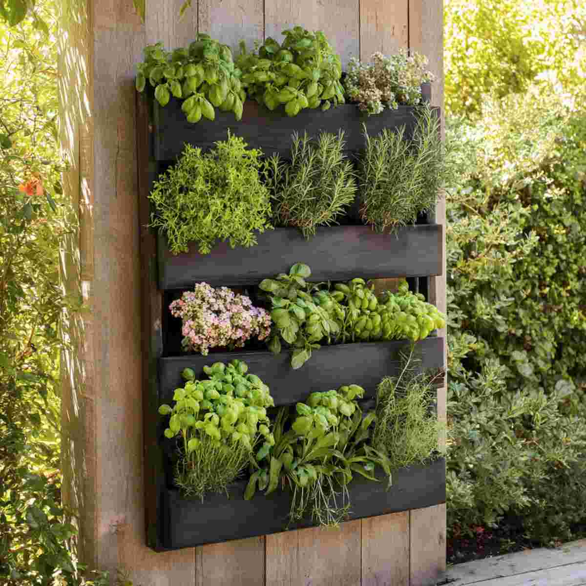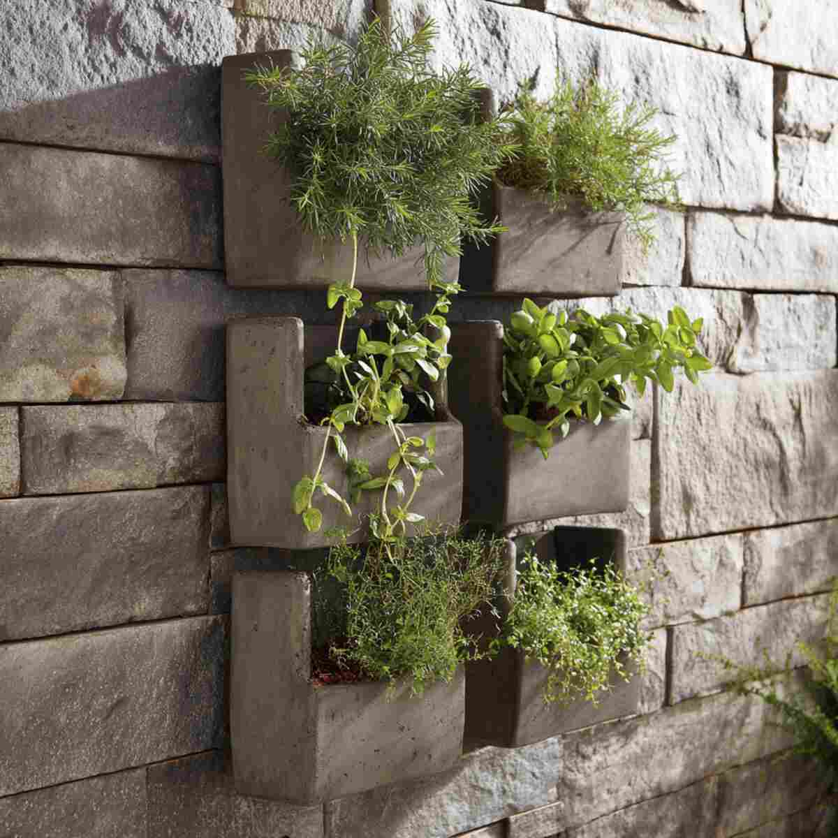 Herb wall planter setups are functional Outdoor Wall Planter Ideas for outdoor cooking and gardening.