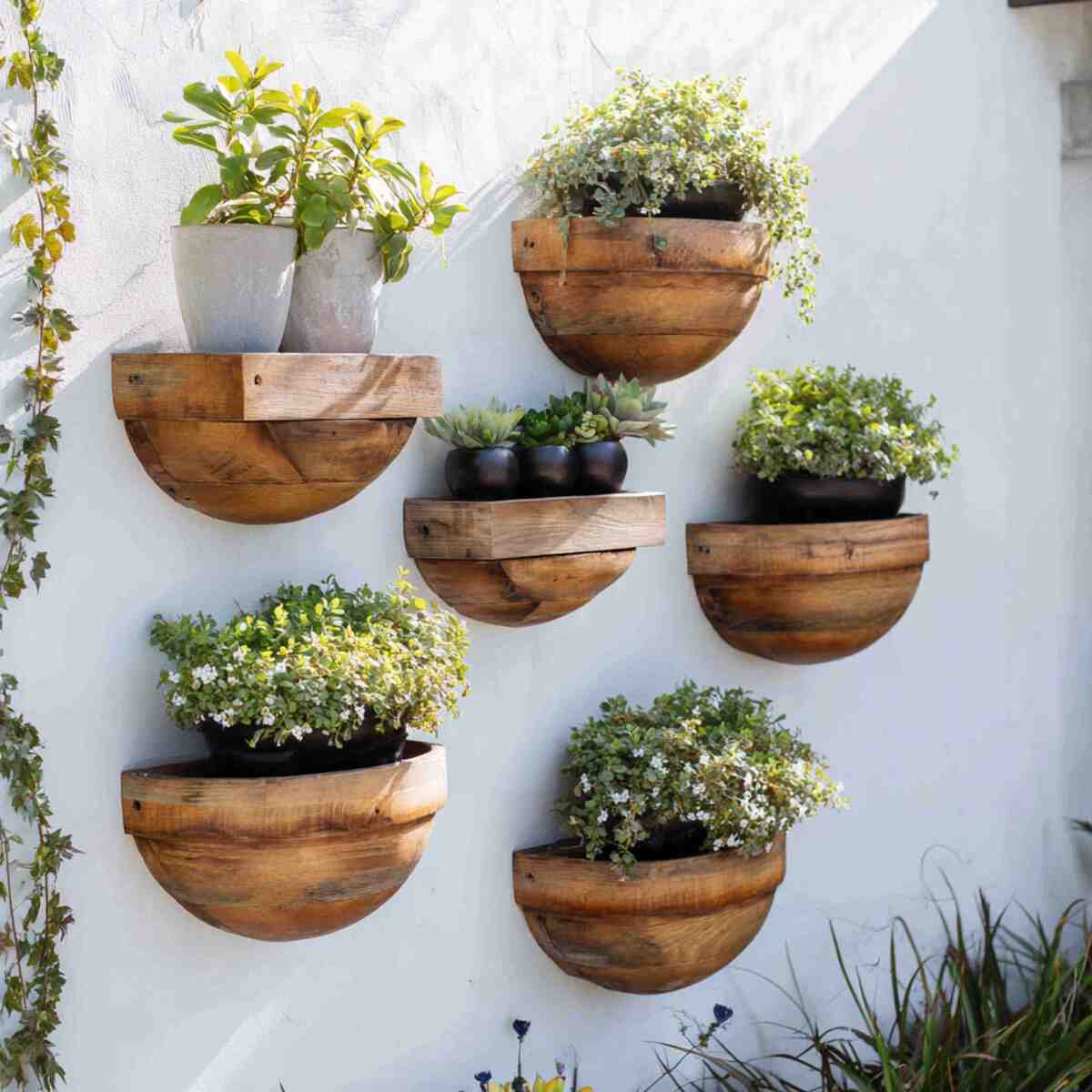 They work well as Outdoor Wall Planter Ideas for rustic gardens, patios, or backyard seating areas. This approach allows you to grow multiple plants vertically while adding warmth and natural charm to outdoor spaces.
