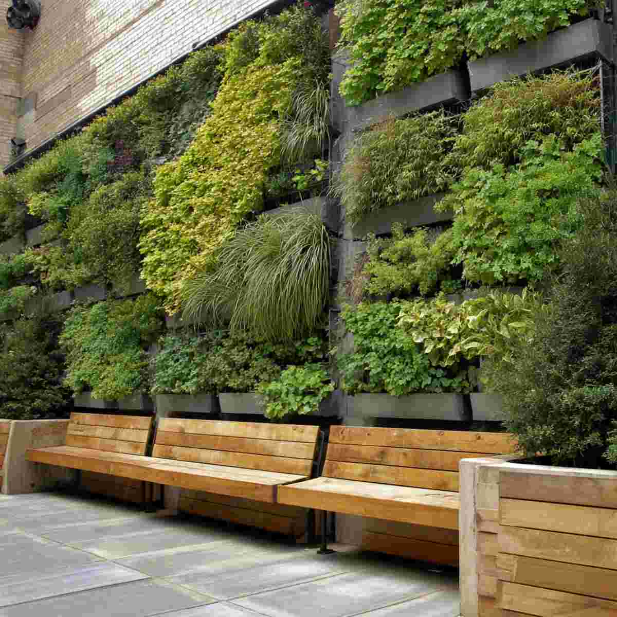 Living green wall systems are advanced Outdoor Wall Planter Ideas that cover entire walls with plants.