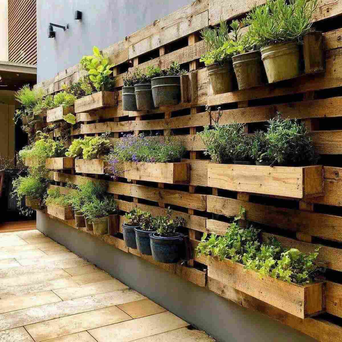 Wooden pallet planter walls are eco-friendly Outdoor Wall Planter Ideas that reuse old materials in a creative way.