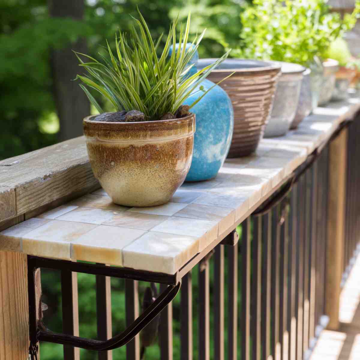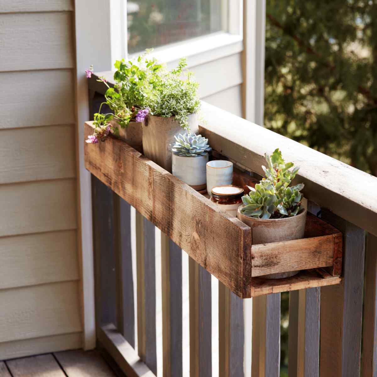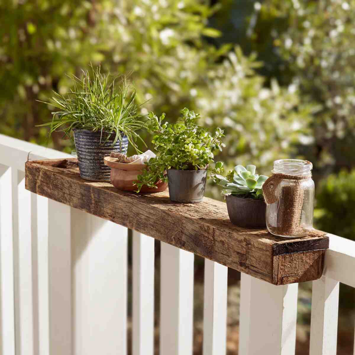 Combining a planter box with a railing shelf lets you enjoy flowers or herbs right at your railing. It’s both decorative and useful for small gardens.