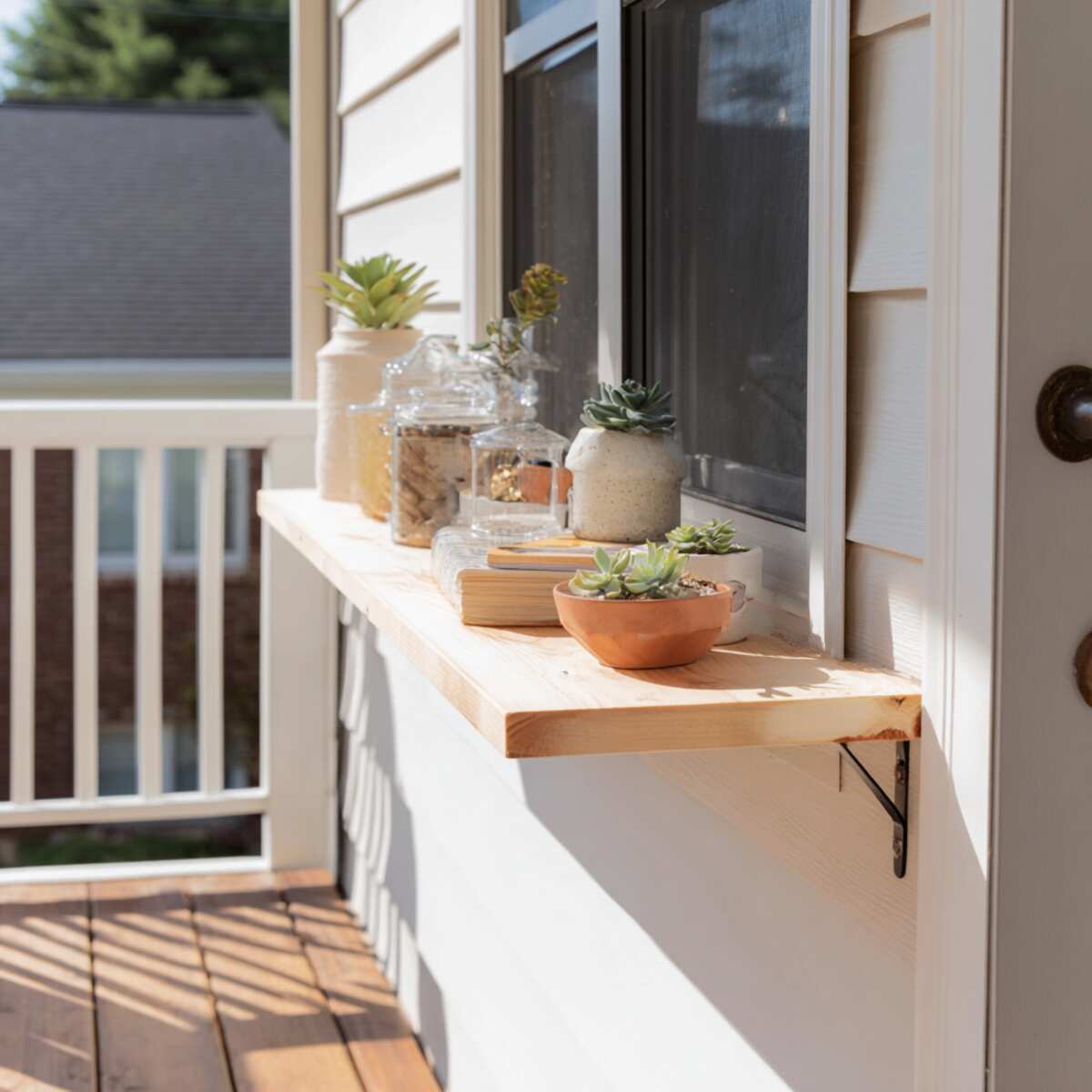 This DIY Porch Railing Shelf Idea is great for modern homes that value sleek, uncluttered designs.