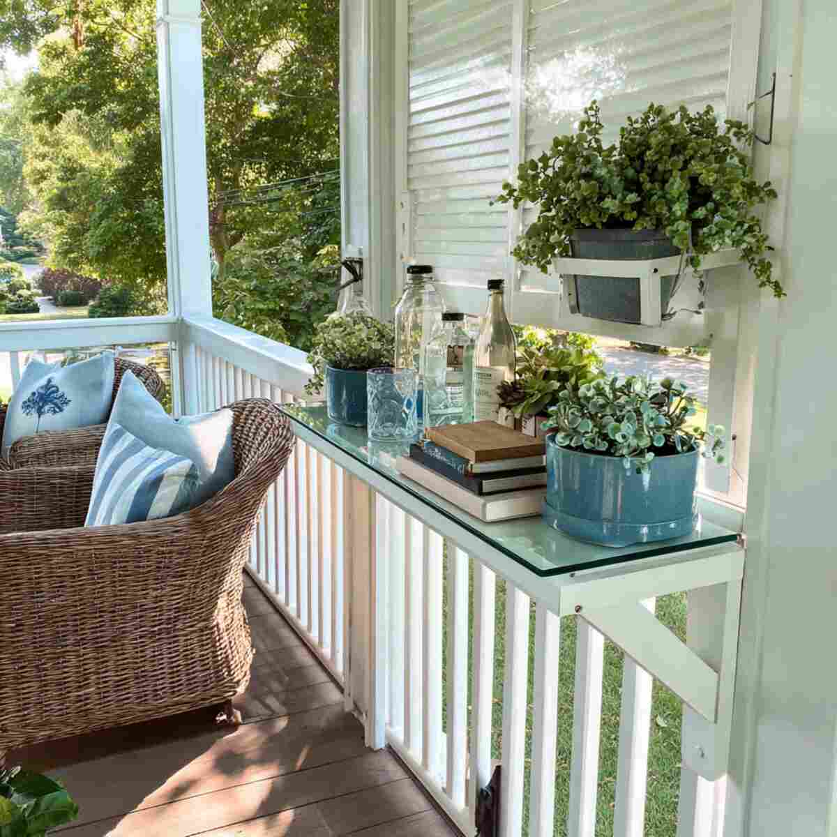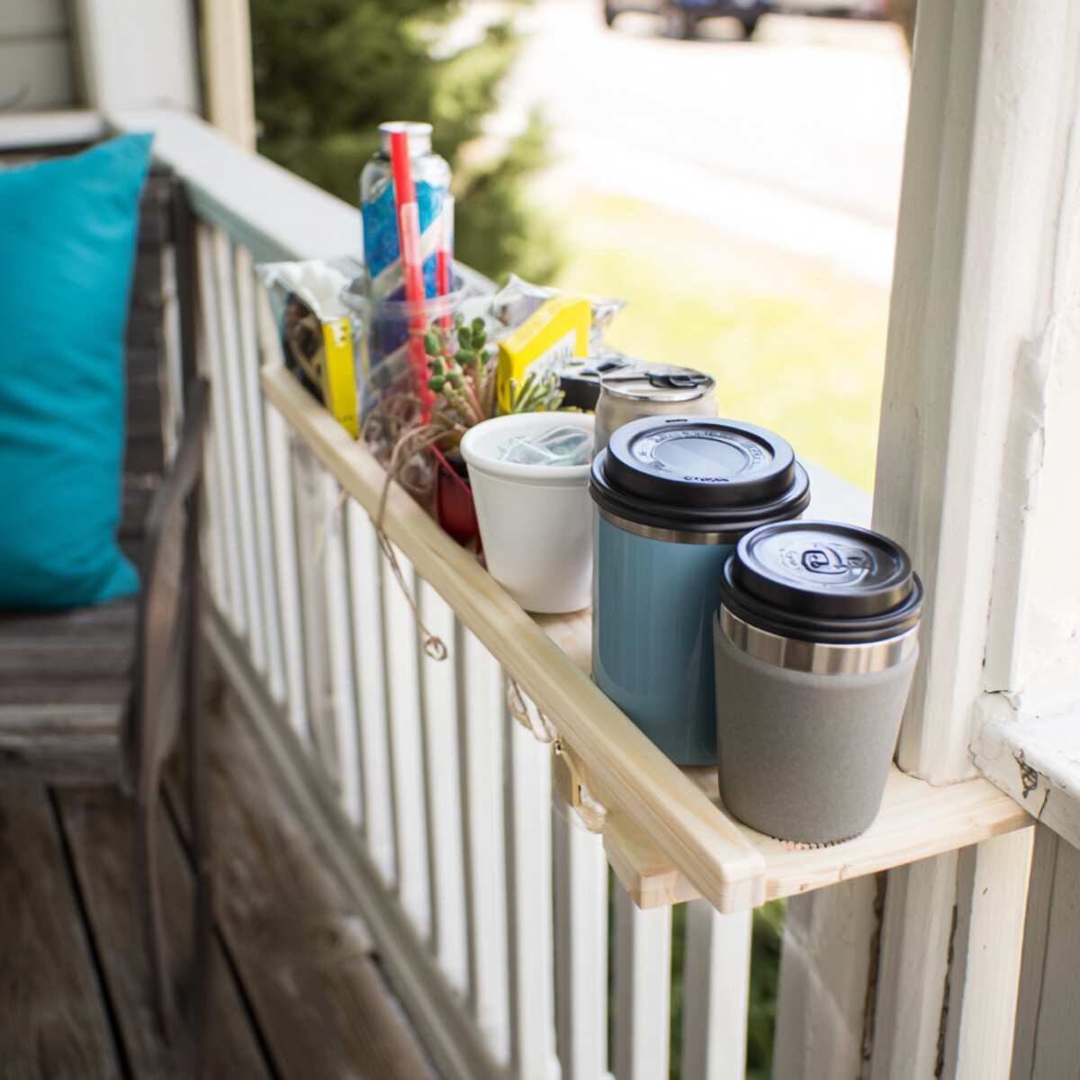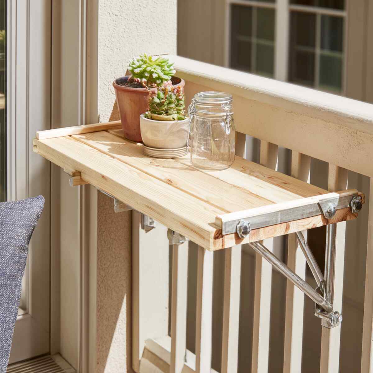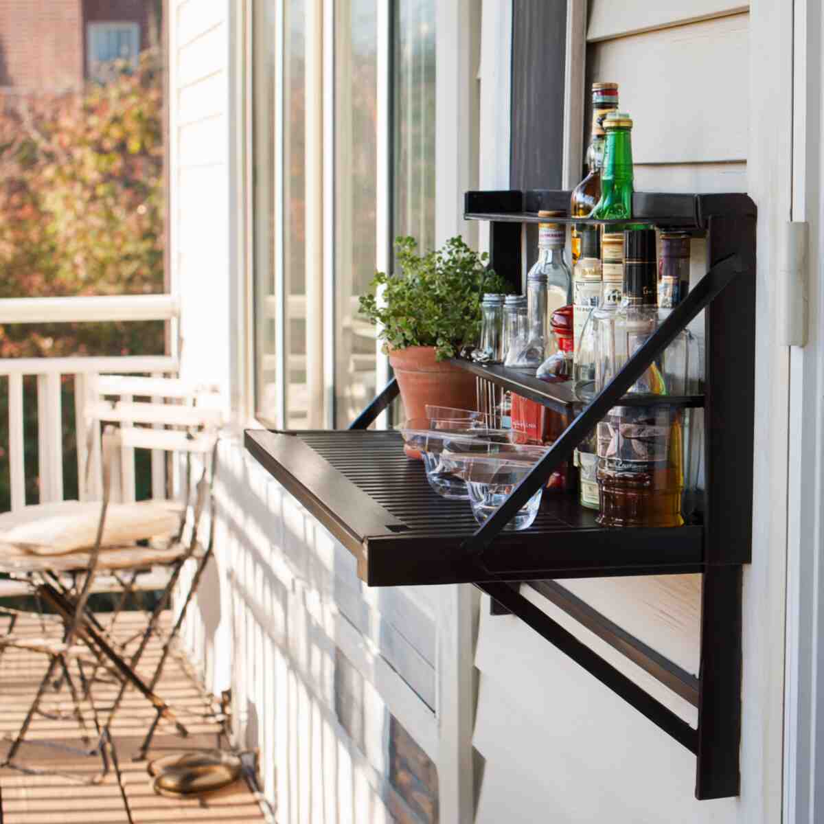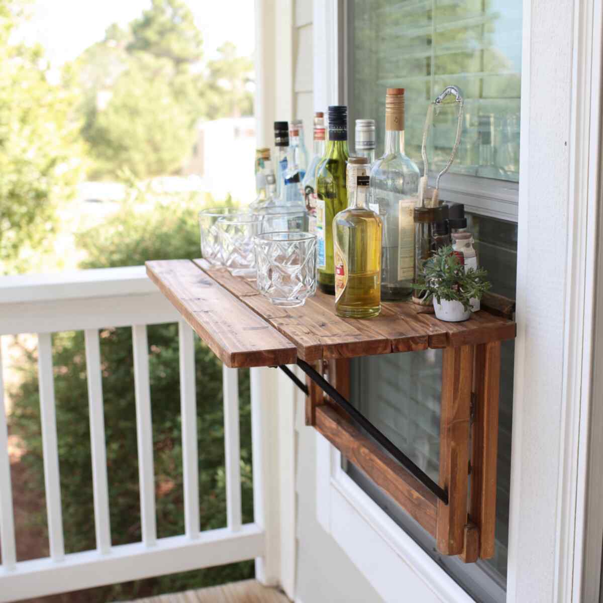 A fold-down railing bar shelf is perfect for small porches where space is limited.