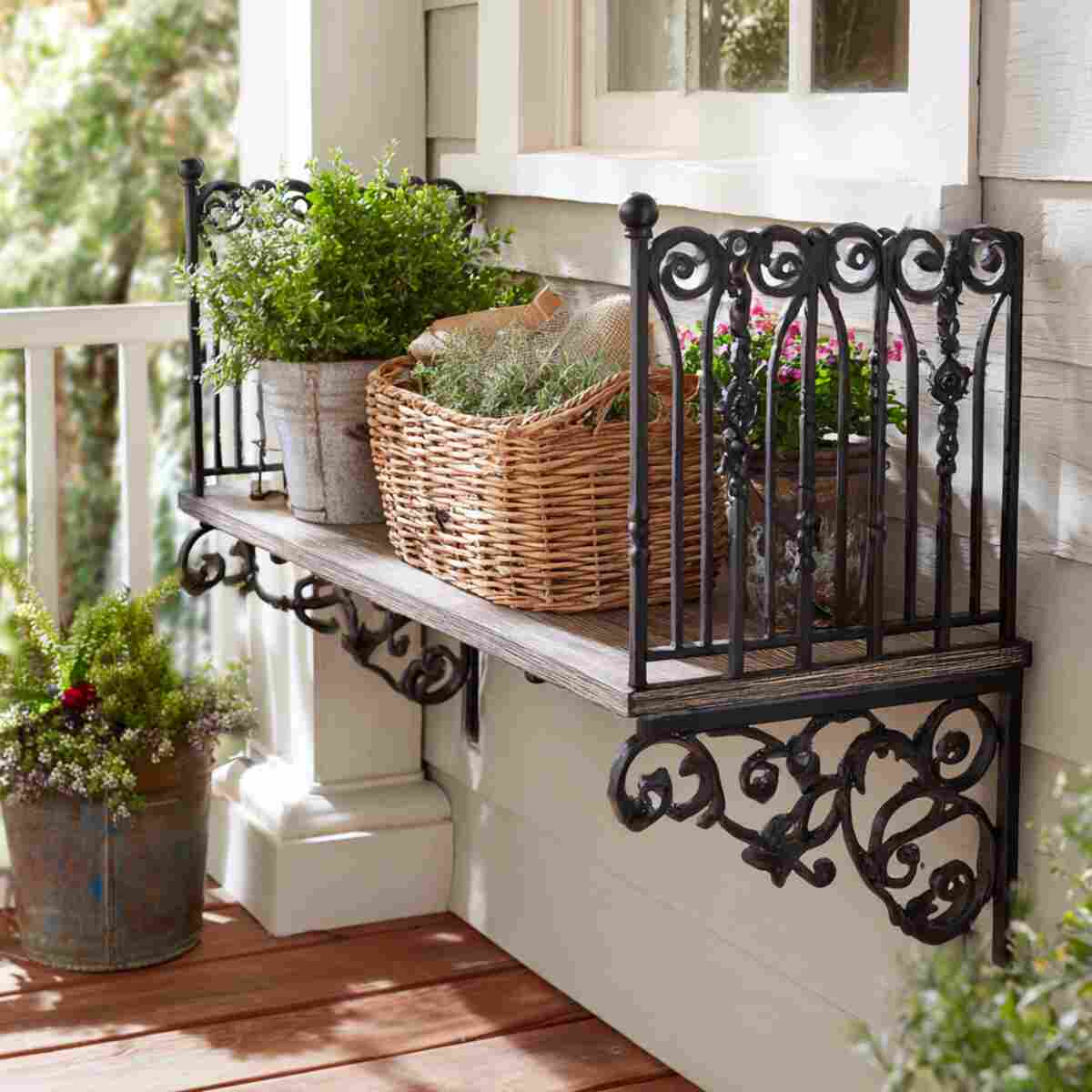A wrought iron shelf adds elegance and strength to your porch. You can pair it with a wooden or glass top for extra beauty and durability.