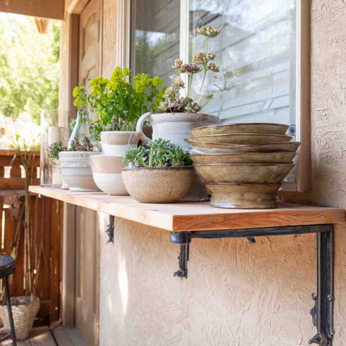It’s ideal for heavier items like flower pots or outdoor decorations. This DIY Porch Railing Shelf Idea is important because it combines durability with style, making it long-lasting and stable.