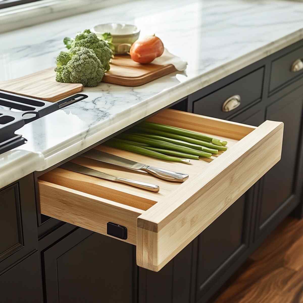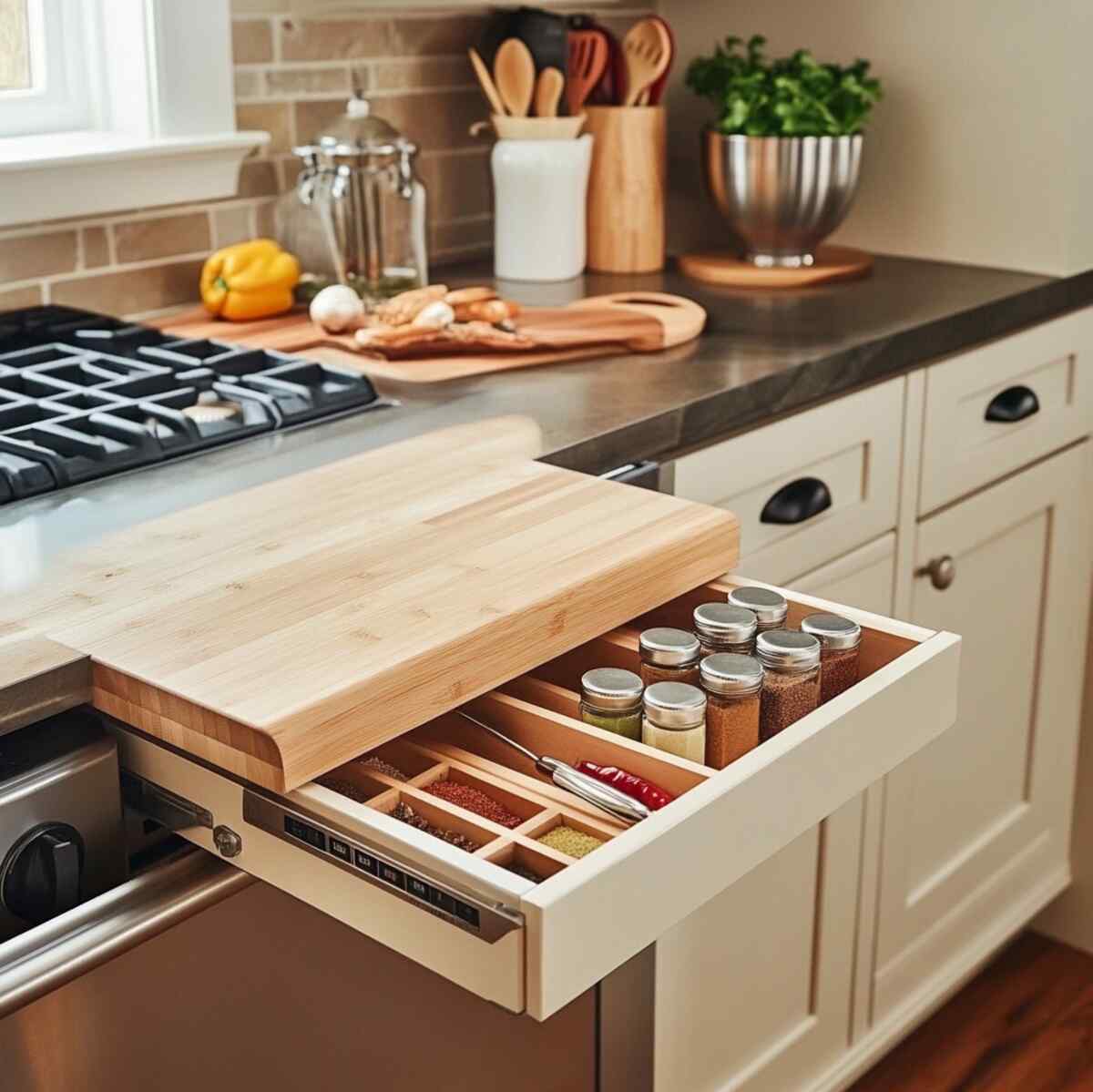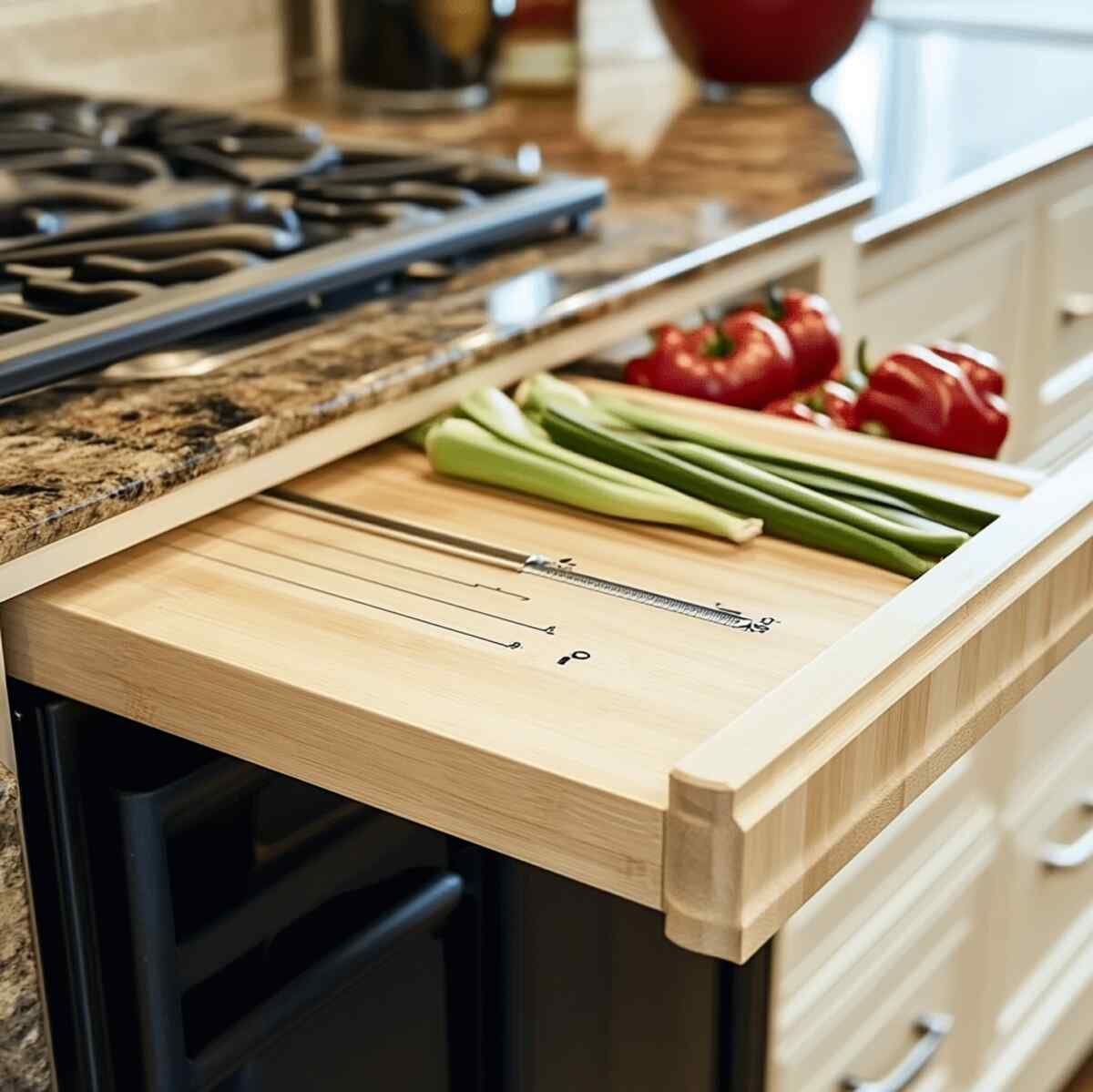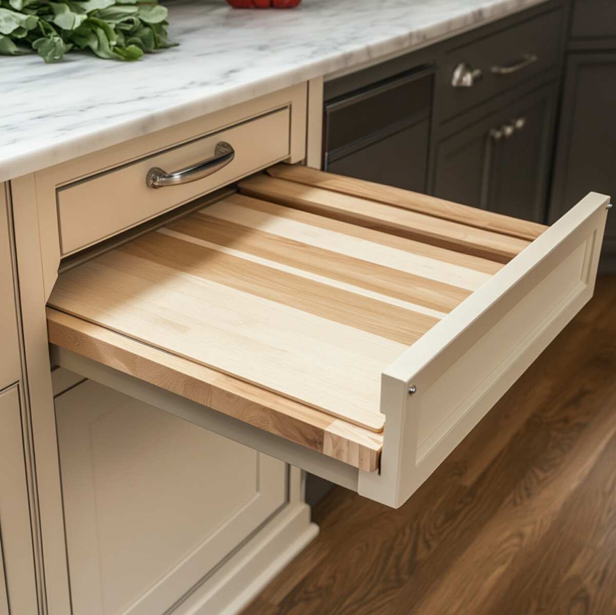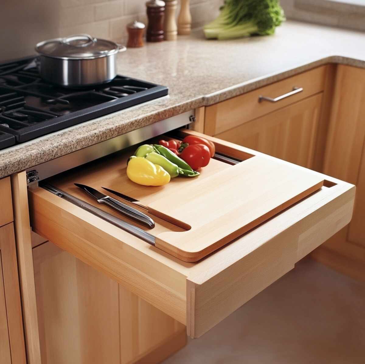 This idea is important among Pull-Out Cutting Board Ideas because it keeps your kitchen organized while providing a convenient prep surface.