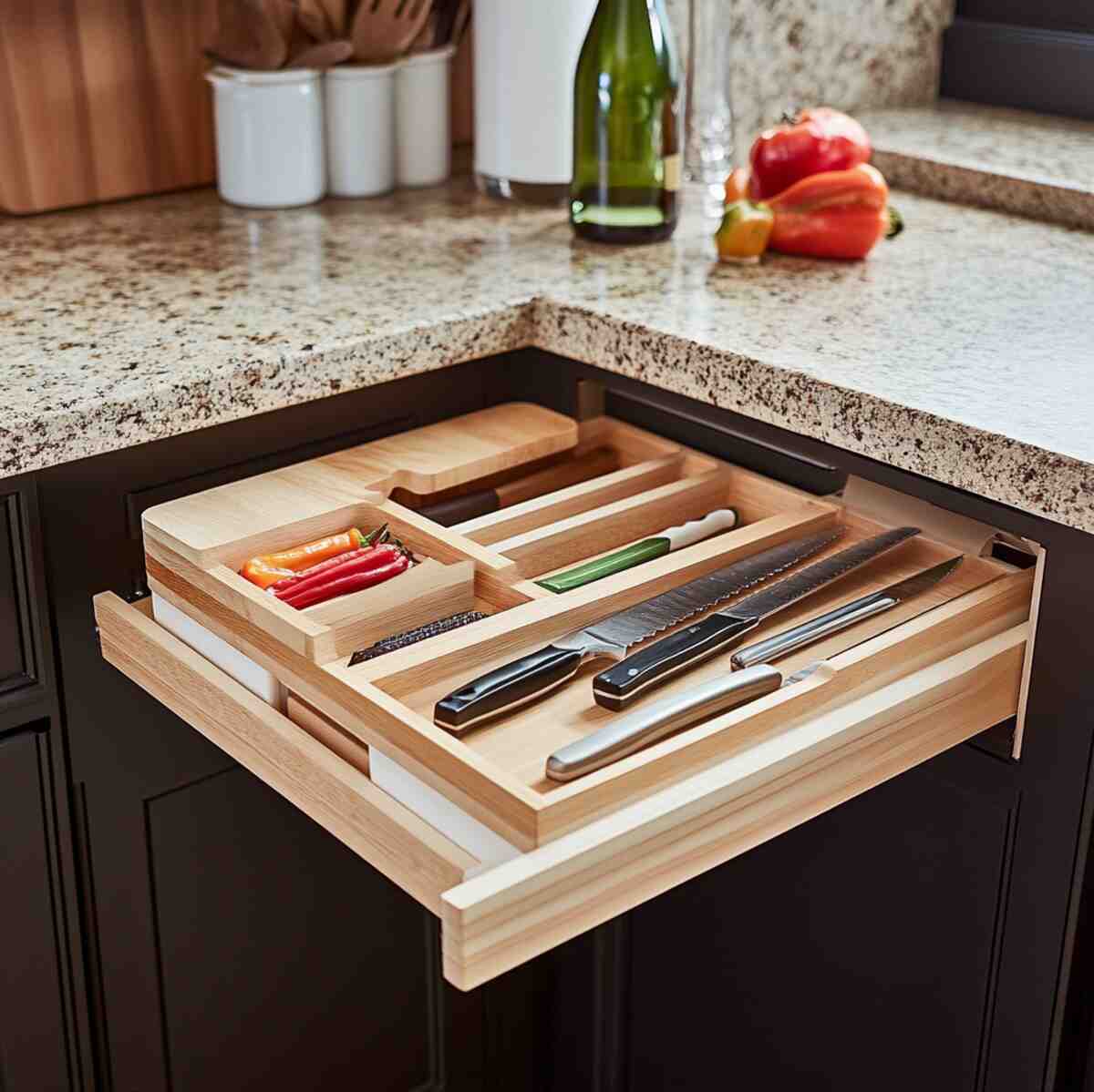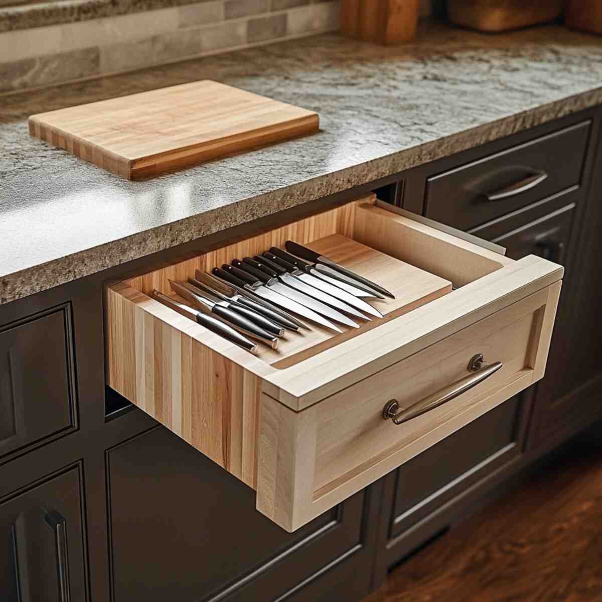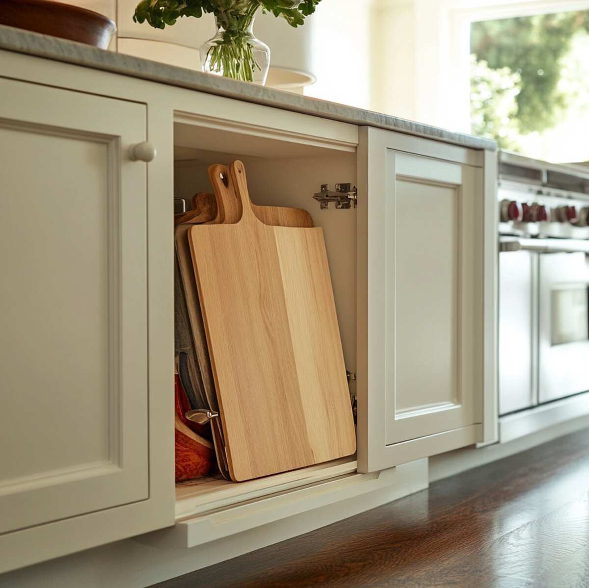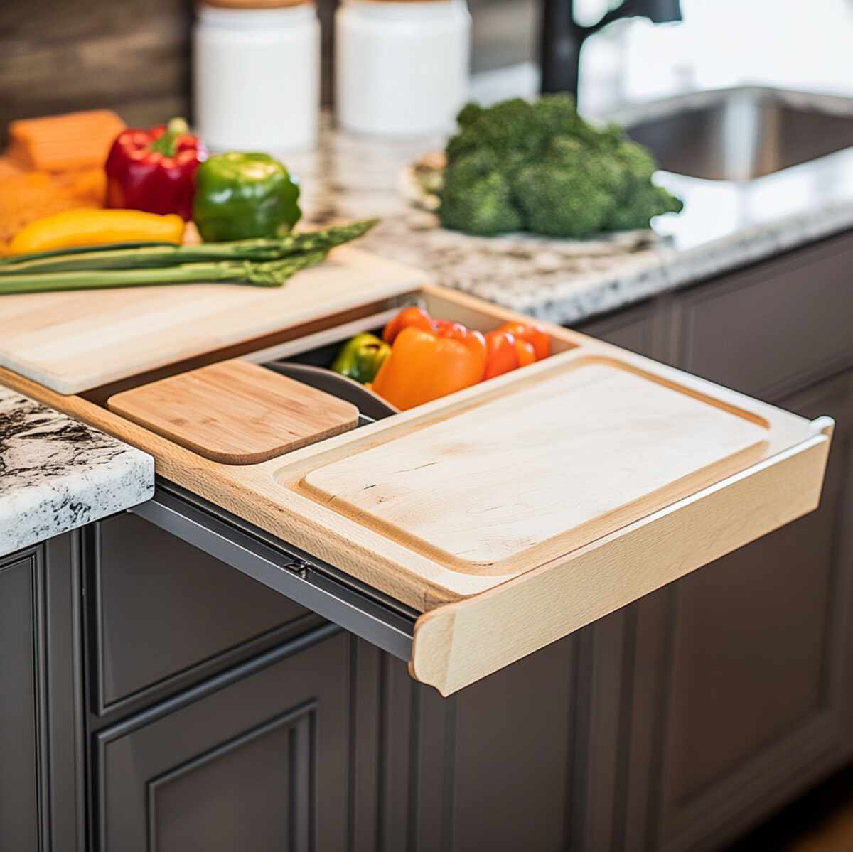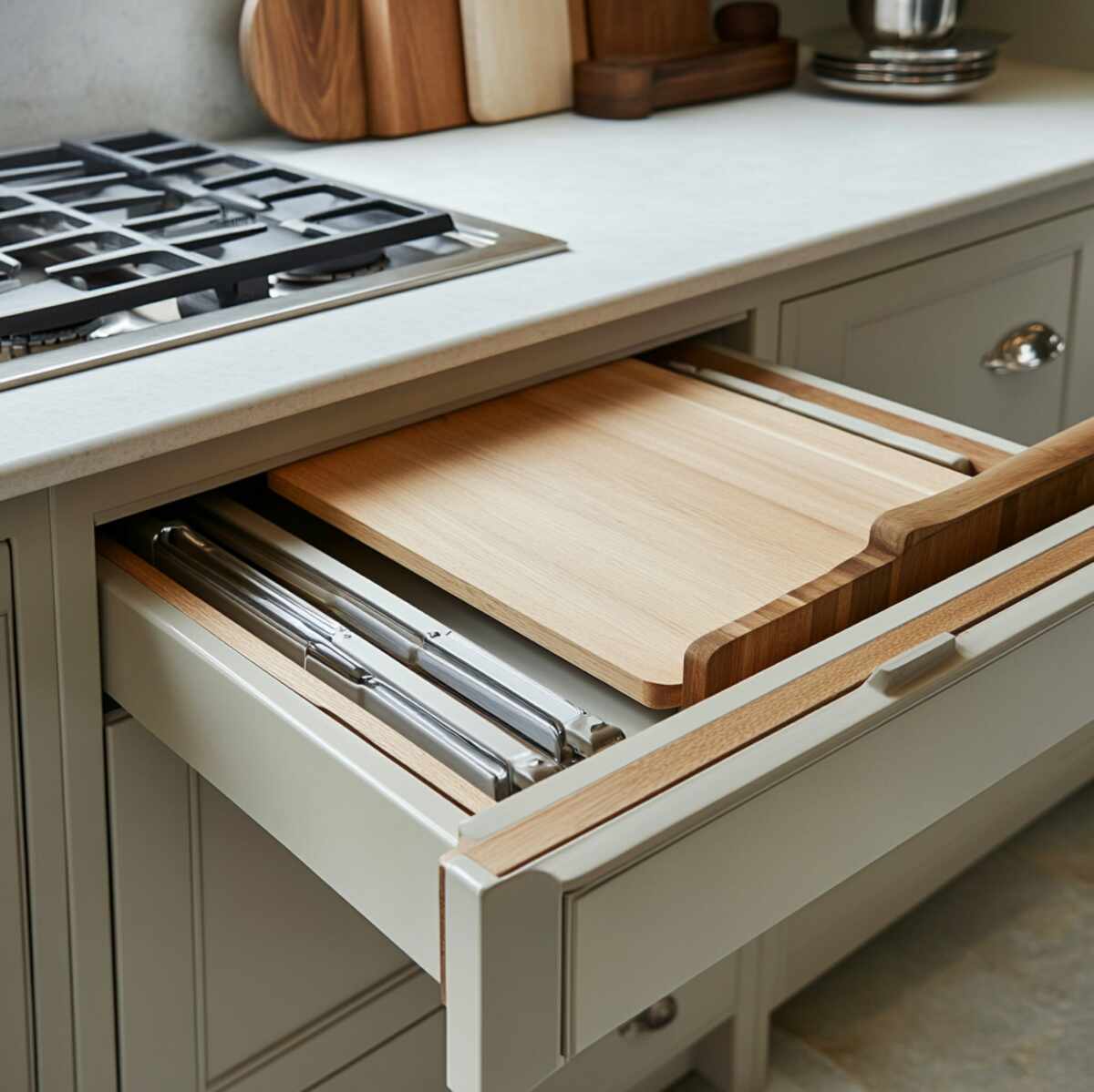 This idea is important among Pull-Out Cutting Board Ideas because it keeps your kitchen organized while providing a convenient prep surface.