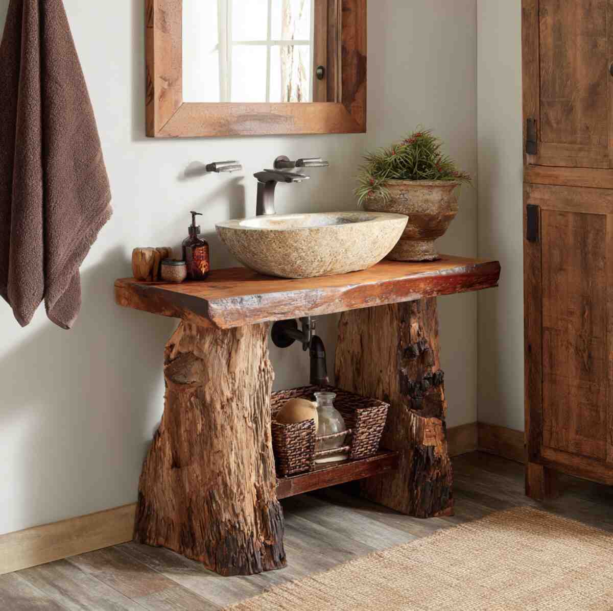 A log-style sink base brings the beauty of nature directly into your bathroom design. The solid wood logs or half-round panels add a rugged yet artistic touch that feels unique and handmade.