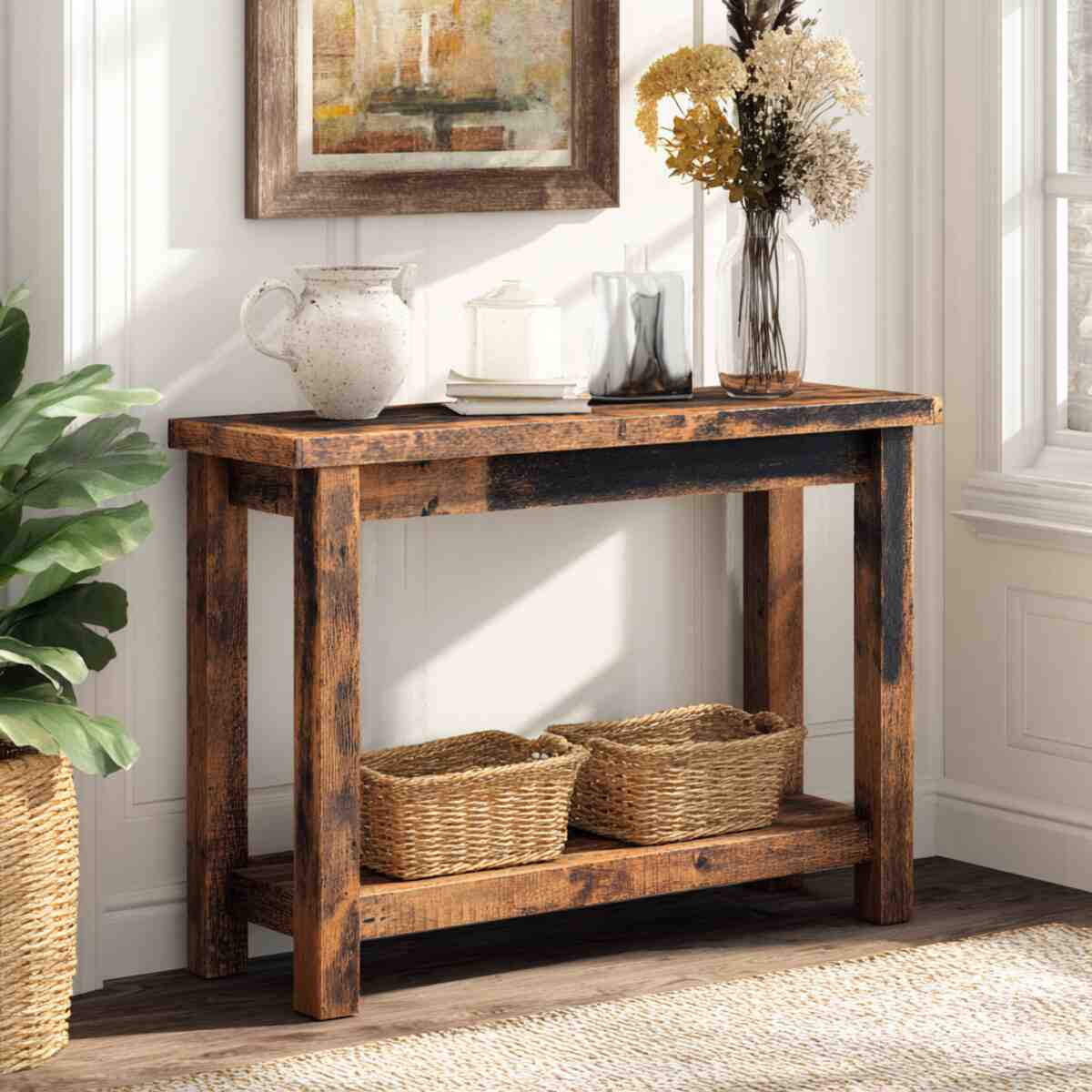 Including a console table in your Rustic Entryway Decor Ideas provides both style and functionality, offering a spot for keys, mail, or decorative accents.