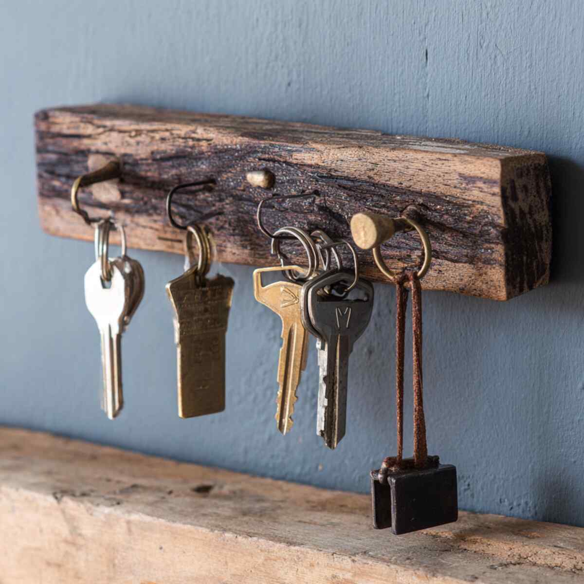A wooden key holder keeps essentials organized while adding rustic charm to your entryway.