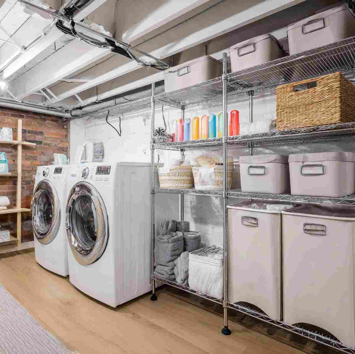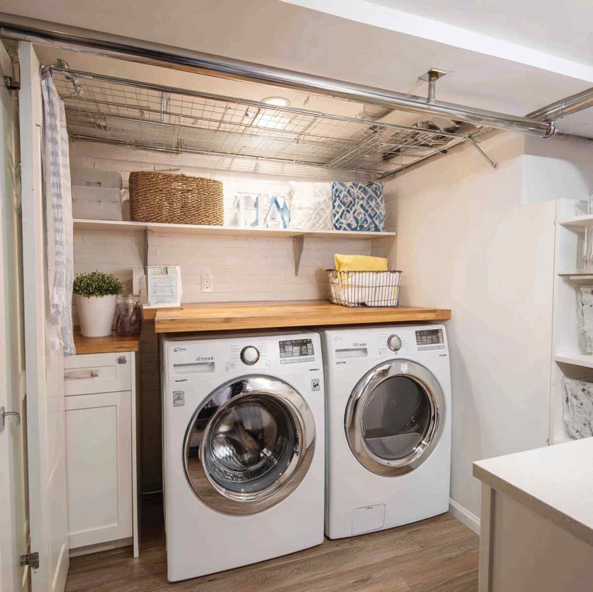 Struggling to fit a laundry area into your small basement and still keep it organized?
