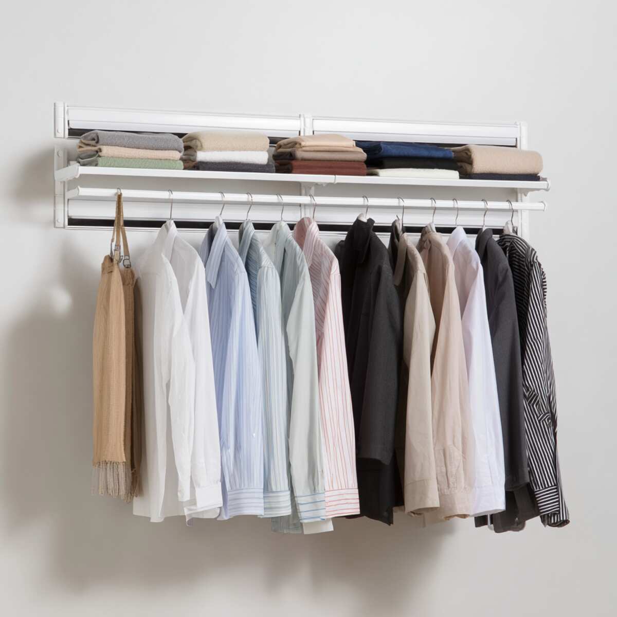 Expandable tension rod shelves are adjustable shelves that fit snugly between closet walls. You can easily expand or shorten them to match your space, creating a temporary or permanent extension.