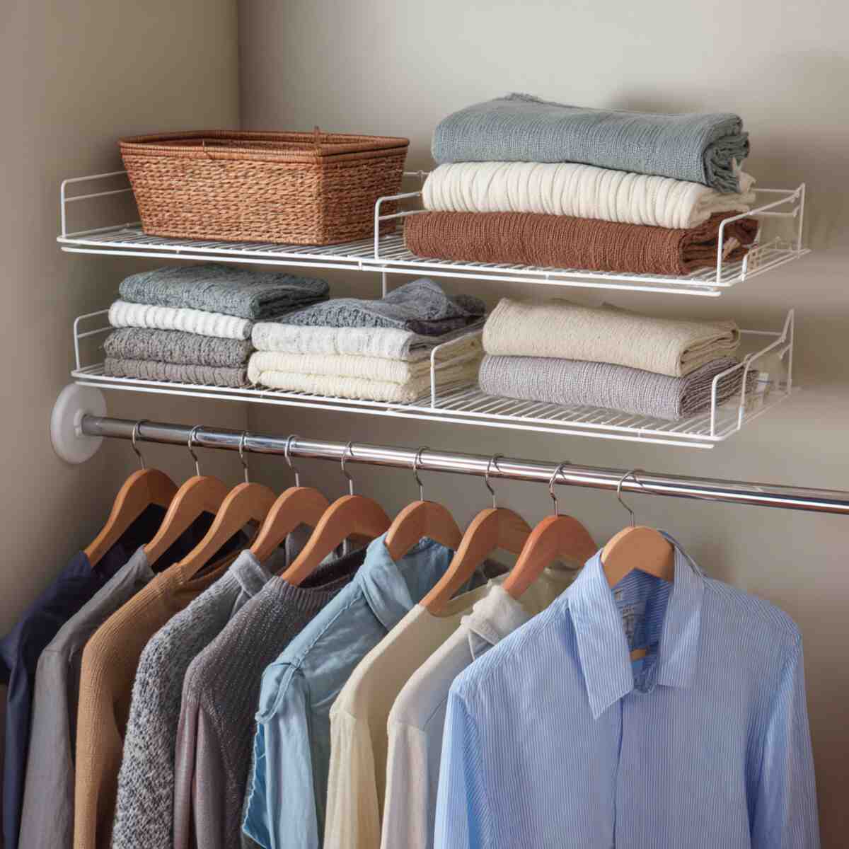 Among Small Closet Shelf Extension Ideas, this option is great for renters since it requires no tools or permanent changes.