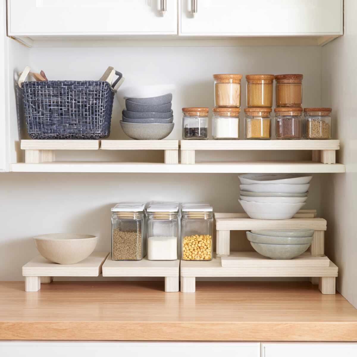 3. Adjustable Tiered Shelf Risers