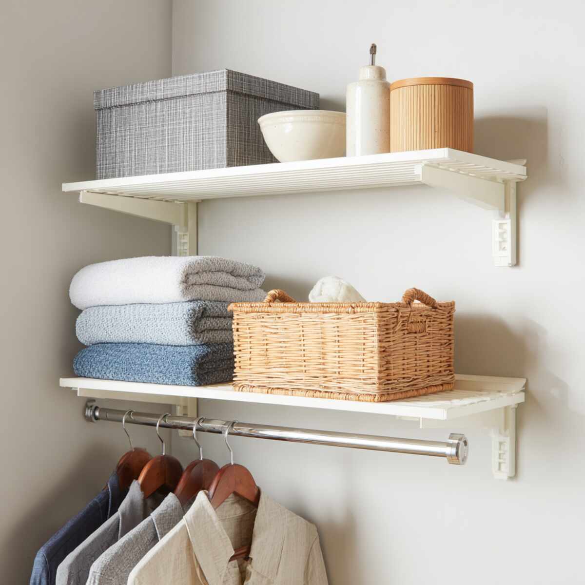 This flexible option stands out in Small Closet Shelf Extension Ideas because it allows you to customize your shelf height to match your needs.