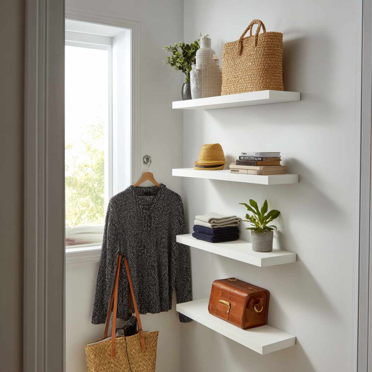They work great for displaying accessories, hats, or small baskets. As creative Small Closet Shelf Extension Ideas, they keep your closet looking neat and stylish while adding function.