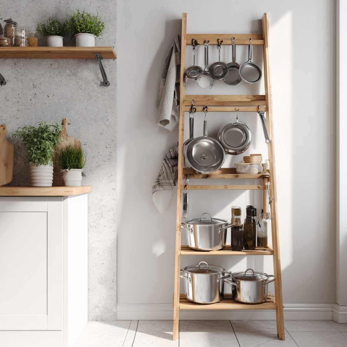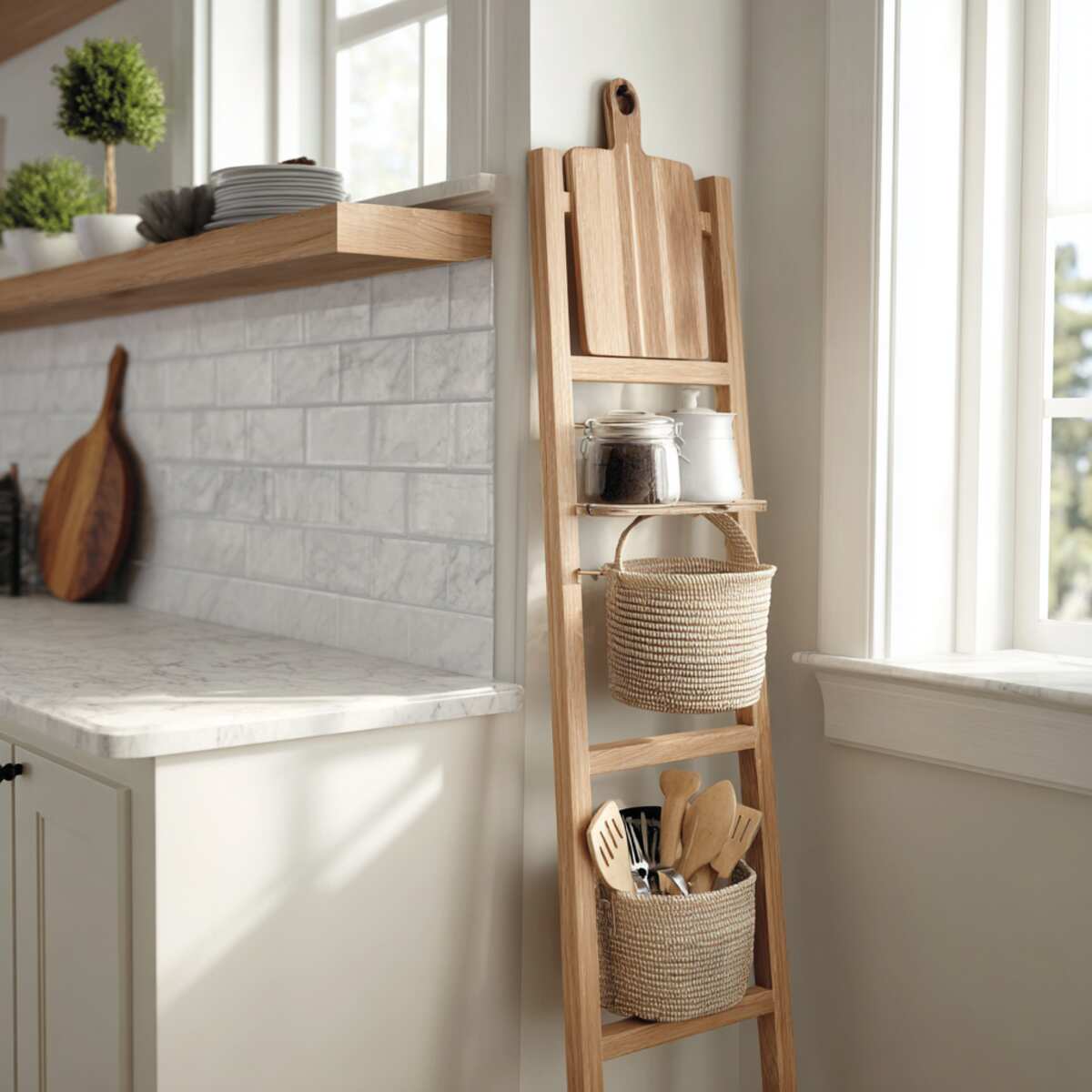 From holding daily essentials to organizing cookware and pantry items, ladder storage helps reduce clutter while keeping everything within reach.