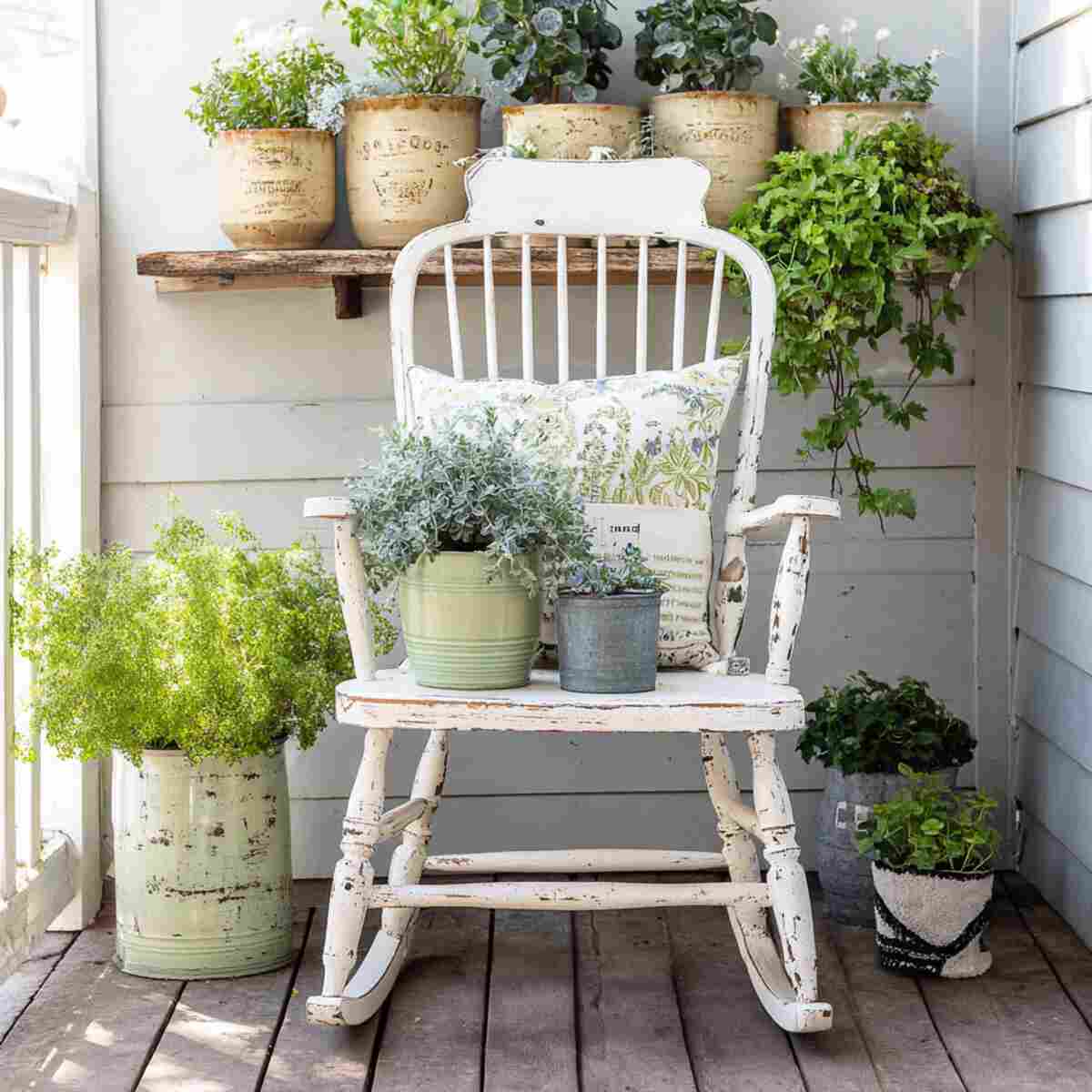 Place a pot on the seat or remove the seat to fit one inside for a unique look. This Small Porch Plant Display Idea adds charm and personality to compact porches.