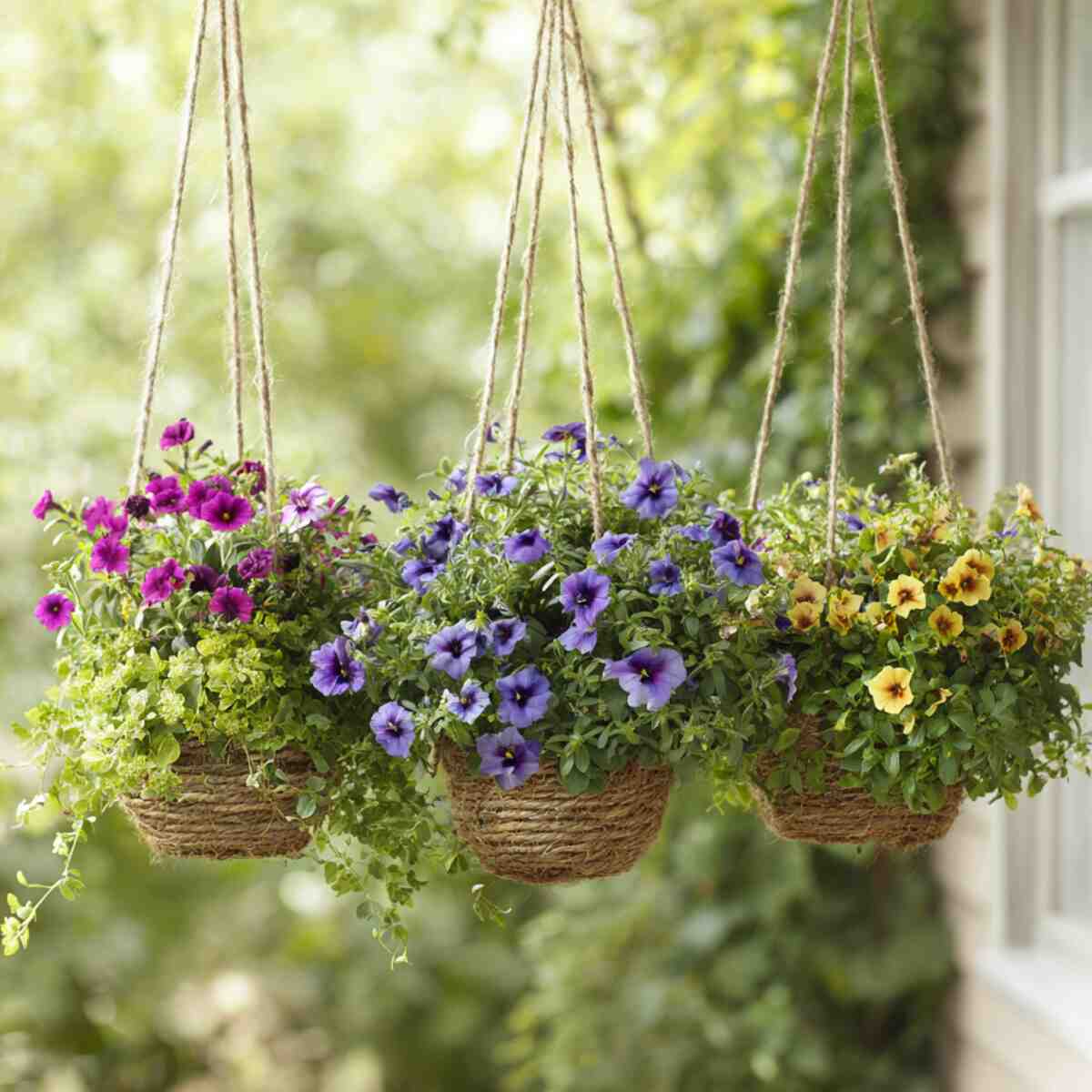 Hanging baskets instantly bring charm and greenery to any porch. You can hang three at different heights to create a layered look that draws the eye upward.