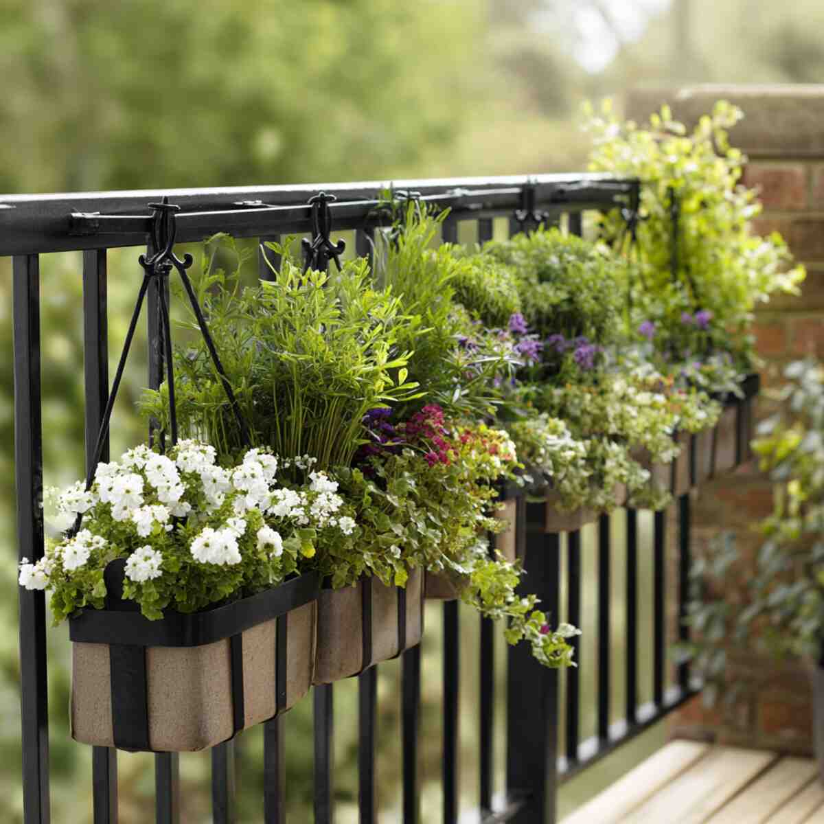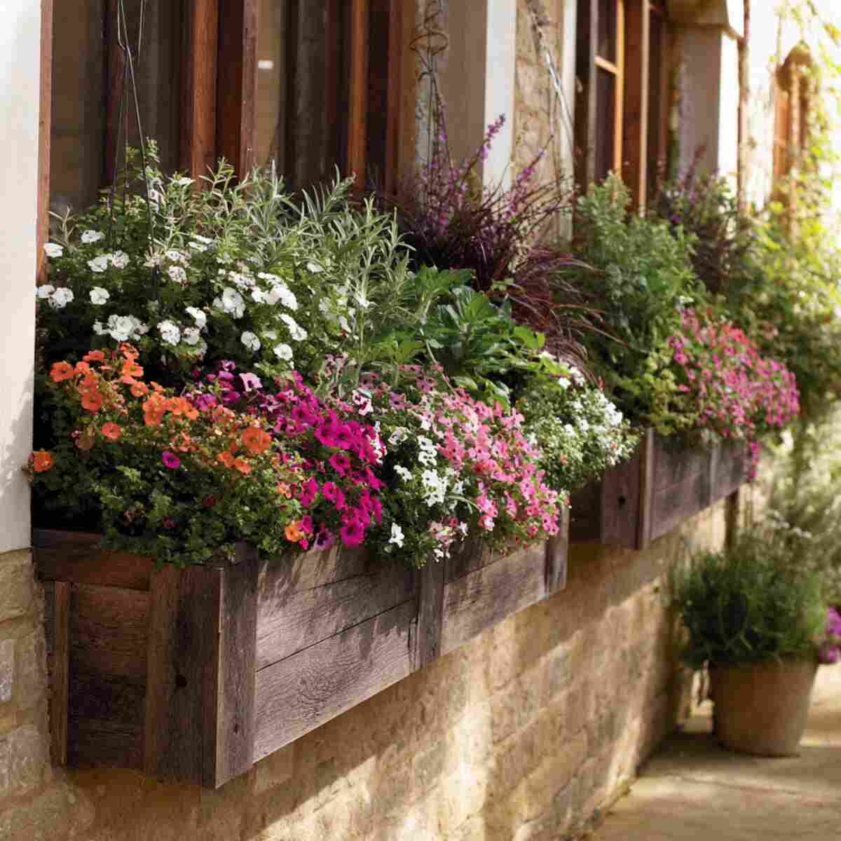 Rail-mounted flower boxes make use of your porch railing, turning it into a beautiful plant shelf.