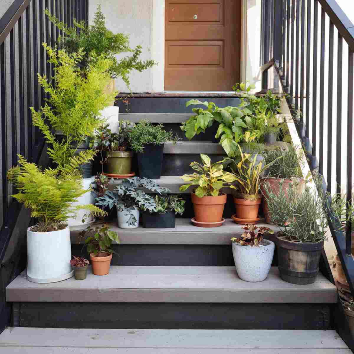 Arranging plants on porch steps gives each pot its moment in the spotlight. It creates a natural flow leading up to your door while showing off various textures and heights.
