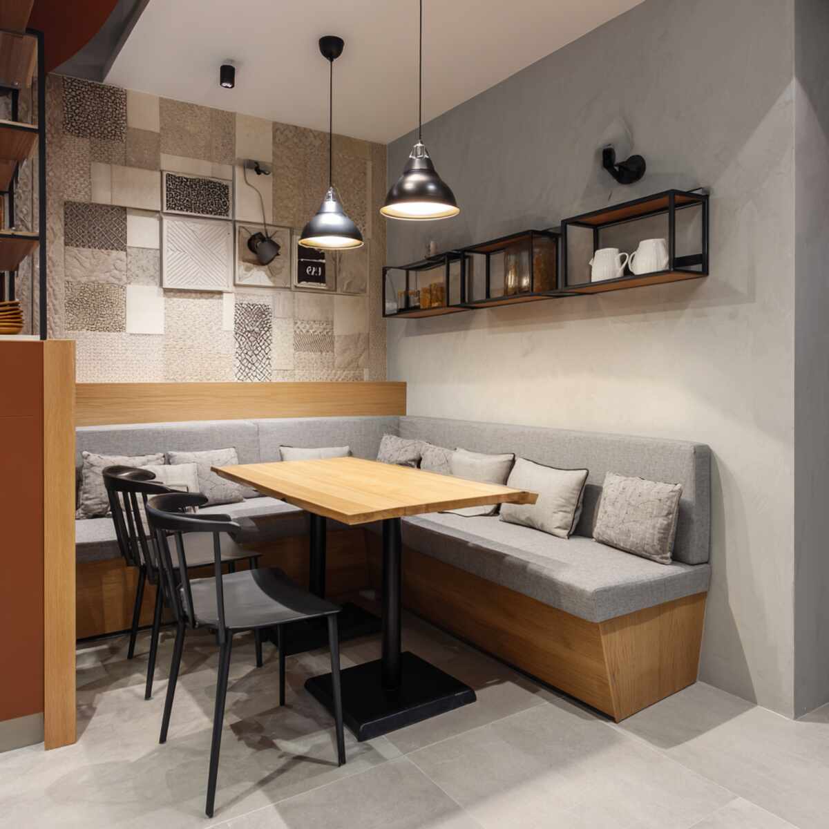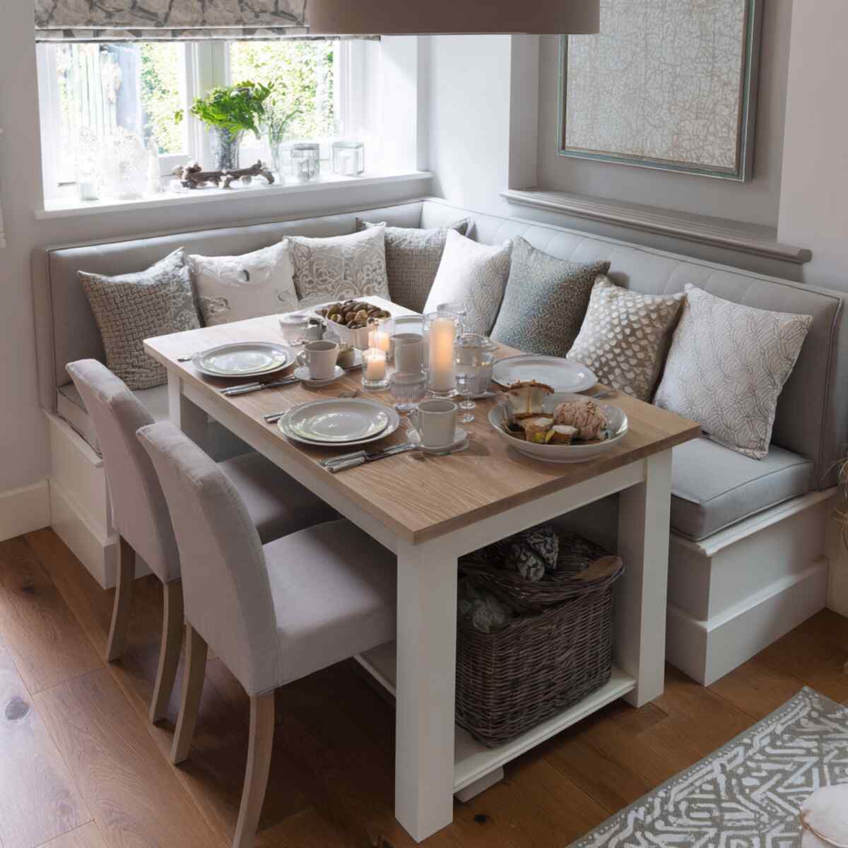 A small table with corner seating creates an intimate spot for meals. As a small space dining zone idea, it helps define a cozy eating zone without needing a separate room.