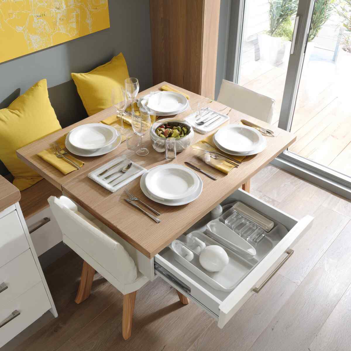 From fold-down tables to built-in benches and clever storage solutions, each idea makes the most of limited space while keeping the dining area inviting.