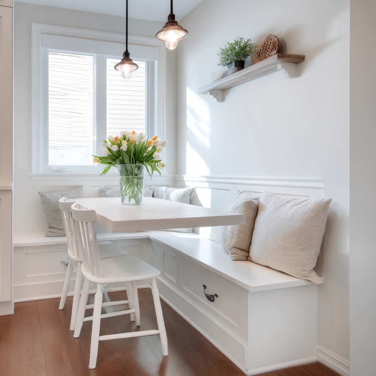 Transforming an empty corner into a breakfast nook is a smart way to make use of overlooked areas.