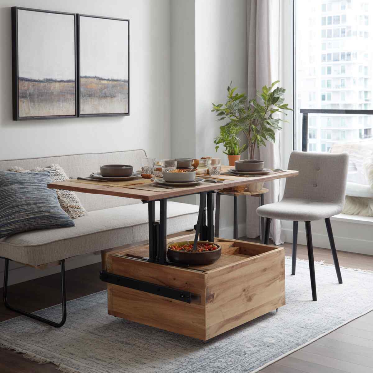 Convertible tables that switch from coffee table height to dining height are game-changers.